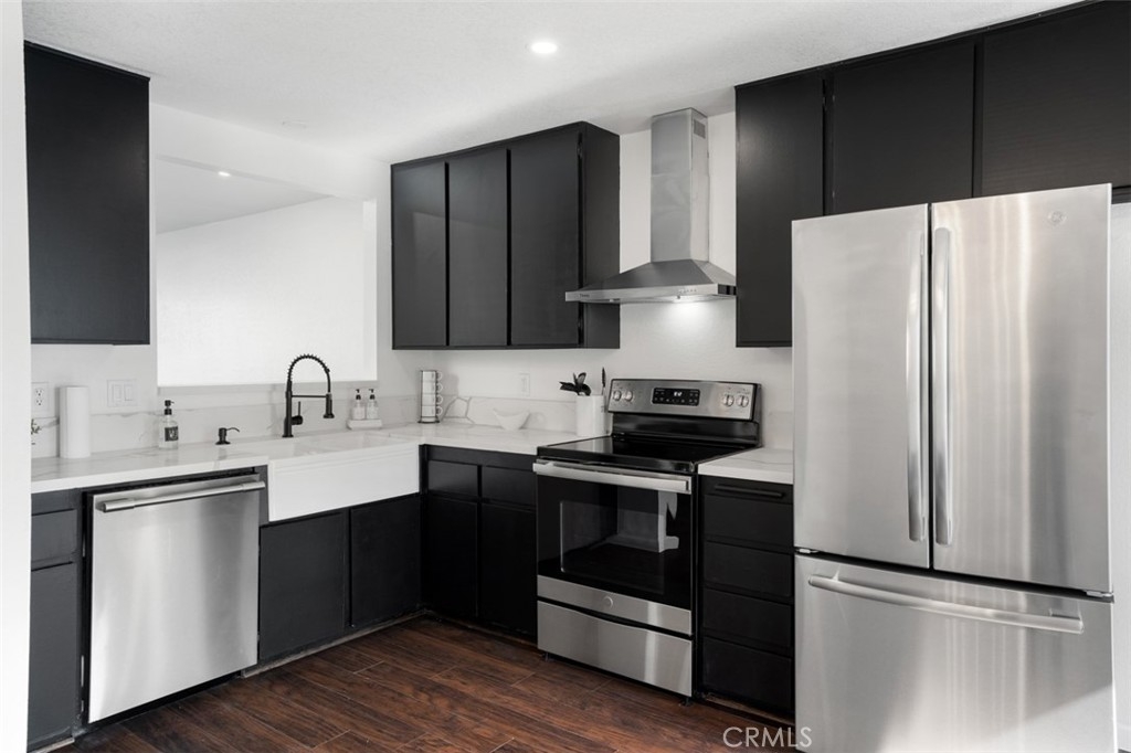 Stunning renovation of a highly desirable Walnut and Batavia townhome. The renovated kitchen has plenty of counter & cabinet space with beautiful quartz counter, led canned lighting, farmhouse sink, matte black faucet and stainless steel appliances (included). The sliding door off the kitchen leads to your private patio and garden. beautiful laminate throughout the first floor and bathrooms. Both bathrooms have been renovated with trendy new vanities, mirrors, lights, faucets and accessories. The main upstairs bathroom has gorgeous new tile as well. Master bedroom has a walk in closet and both bedrooms have upgraded led canned lighting. Laundry is in the upstairs hall. Included with this unit is both a single car garage and an assigned parking space. Complex offers pool/spa HOA amenities. Don't miss the opportunity to live in this spacious floor plan blocks from Chapman College and Old Town Orange with shops, restaurants and entertainment this unit will go fast! BOM no fault of seller.