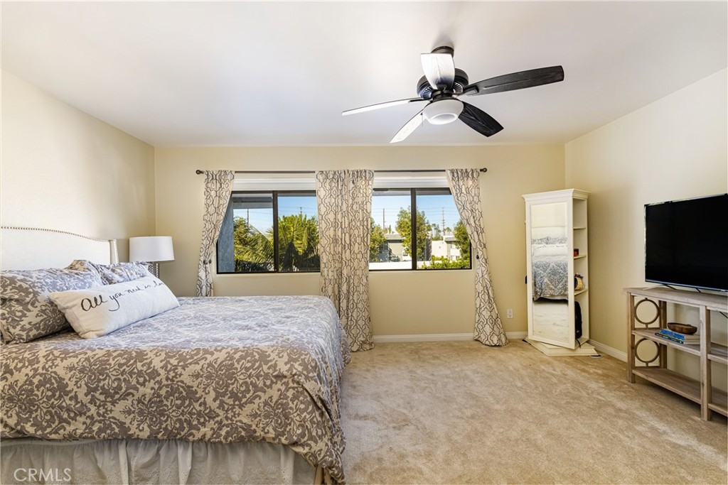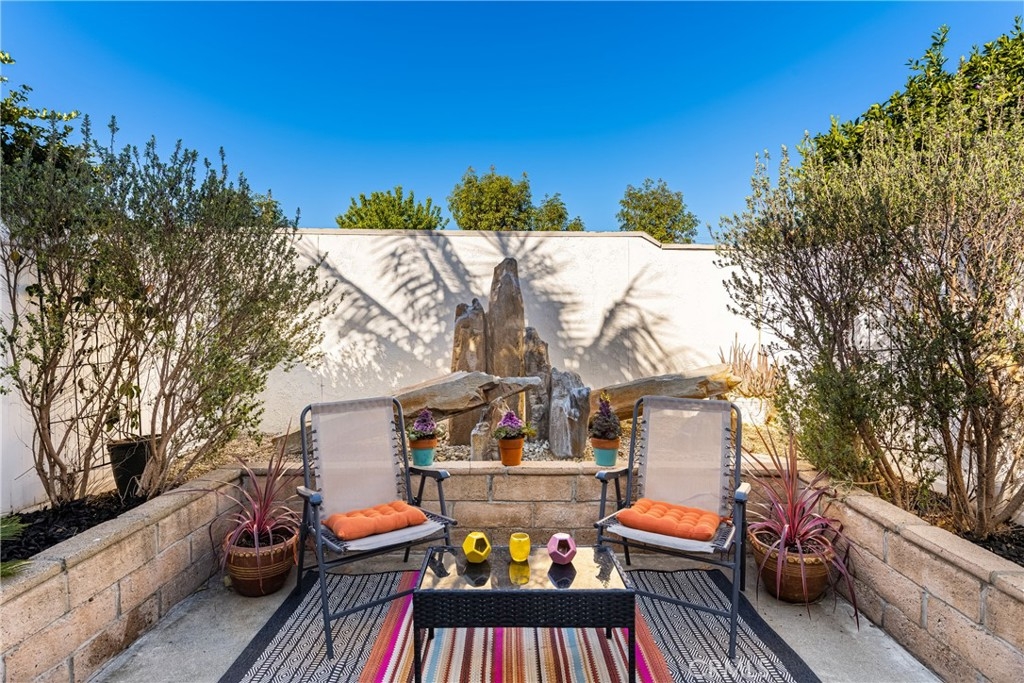 Welcome to this hard to get unit with a one car attached garage that has direct access to the oversized patio! This plan doesn't come up very often in the Walnut Village Townhomes!. Stepping in you find plenty of room for hanging out in the comfy living room, a large window that brings in lots of light, and a nook under the stairs. A breakfast counter is accessible from the kitchen and the living room. This spacious kitchen with white shaker cabinets and quartz counters is large enough to hold a table that seats six and has views of the back patio. There is laminate flooring throughout the downstairs with the inclusion of the downstairs guest bath which has been upgraded. Upstairs, the huge main bedroom has a spacious walk in closet and the secondary bedroom is great for a live/work environment and they share a remodeled bathroom. Brand new carpet and paint throughout and ceiling fans in the bedrooms and kitchen. The deep patio has lots of entertaining space with a gazebo, and showcases a beautiful water feature with lights. Walking distance to the Orange Circle and Chapman University, and conveniently located near The Block, Anaheim Stadium, the theatre and many restaurants. There is also a parking space right in front of the unit and the community offers pool, spa, and lots of usable grass area for pets!