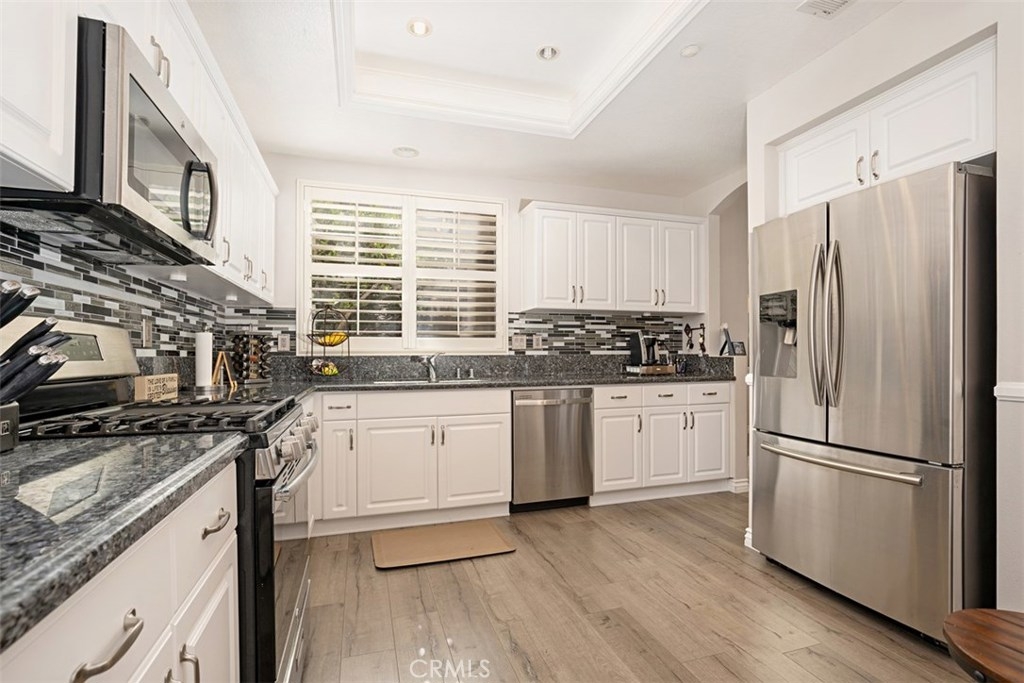 Modern, updated 3 bedroom, 2.5 bath town home with designer touches throughout! Completely private end unit perfectly situated in a prime location on private Cul-De-Sac in a beautiful resort-style gated community! Charming entrance into this beautifully sunlit home featuring rich laminate flooring throughout unit. Huge kitchen and separate ample dining room. Kitchen has white cabinets, mosaic tile back splash, granite, and stainless steel appliances. Expansive living room contains windows and soaring ceilings which provide a copious amount of natural light. Ceiling fans in all the rooms. Generous, private master suite features a vaulted ceiling, large walk-in closet, and a decadent master bathroom with dual sinks. Plantation shutters to adorn the windows. The two additional bedrooms are spacious. Convenient direct access over-sized, 2 car garage with space for storage. A great size patio, perfect for entertaining family and guests. AC unit is 1 year new. HOA features 2 pools, 2 spas, and club house for your special events. HOA dues include water and trash. Located within minutes of Grajalva Community Sports Park/Gym, Santiago Bike Path, Grocery/Shopping Center and a wide variety of dining options. Old Town Orange and Chapman University are in close proximity. Easy access to freeways