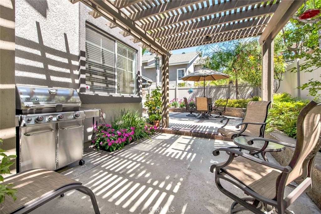 Located in the Gated Huntington Community of Orange, 3402 E. Salisbury Circle #B is a Move In Ready Three Bedroom, Three Bathroom Townhome (The Main Floor Bedroom is Currently Being Used as a TV Room). This Highly Sought-After End Unit Enjoys an Open Floor Plan, Extra Large Patio/Sideyard, Rare Two Car Driveway, Dual Pane Windows, and Ample Natural Light Throughout. The Family Room Includes a Vaulted Ceiling, Cozy Fireplace, and Opens to the Kitchen/Dining Area. The Kitchen Enjoys Ample Counter/Cabinet Space, Recessed Lighting, and Overlooks the Dining Area with Backyard Access. The Spacious Master Suite Features a Vaulted Ceiling and En-Suite Bathroom with Dual Vanities, Walk-In Shower, Separate Bathtub, and Walk-In Closet. The Additional Second Floor Bedroom Also Enjoys an En-Suite Bathroom. Main Floor Laundry Room with Built-In Cabinets and Direct Access to the Two Car Garage. The Spacious Backyard Features a Pergola, New Vinyl Fence, and Multiple Seating Areas. Additional Upgrades Include a New Water Heater, New HVAC, New Toilets, New Blinds, and New Garage Door Opener with Camera. The Gated Huntington Community Includes Pools/Jacuzzis, Clubhouse, and Patio Area. Walk to Grijalva Park, Shopping, and Dining. Short Drive to the 5/55/22/91 Freeways, 241/261Toll Roads, and The Orange Circle (Plaza). 3402 E. Salisbury Circle #B is a Must See!