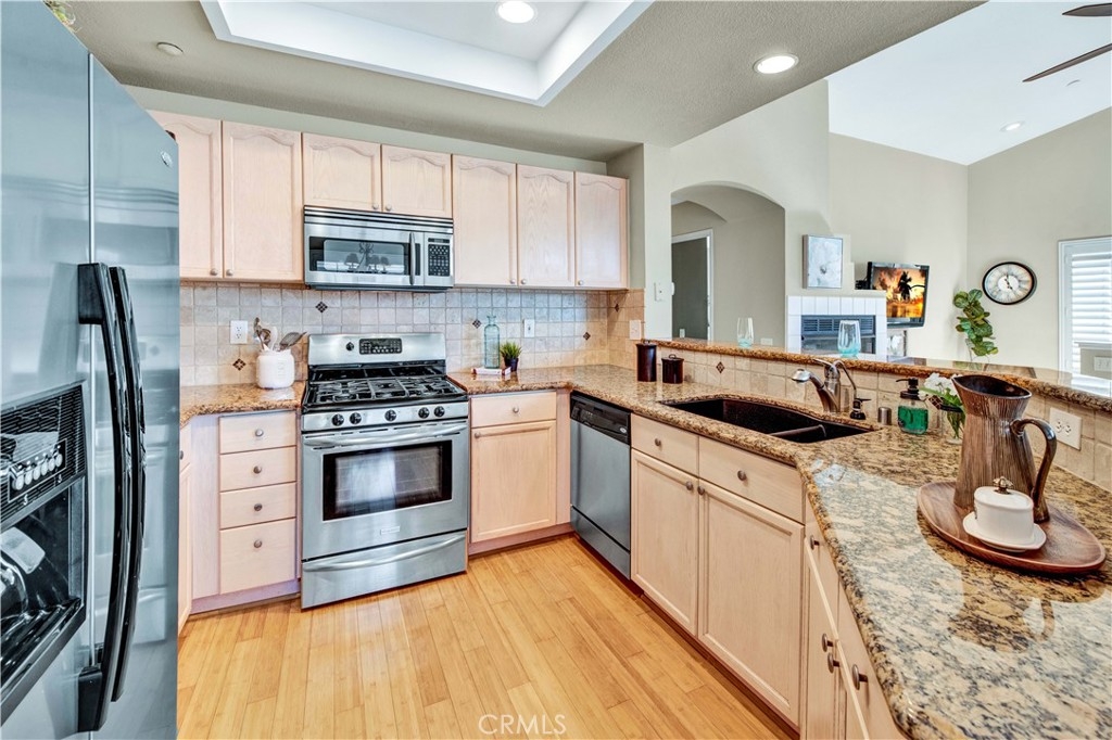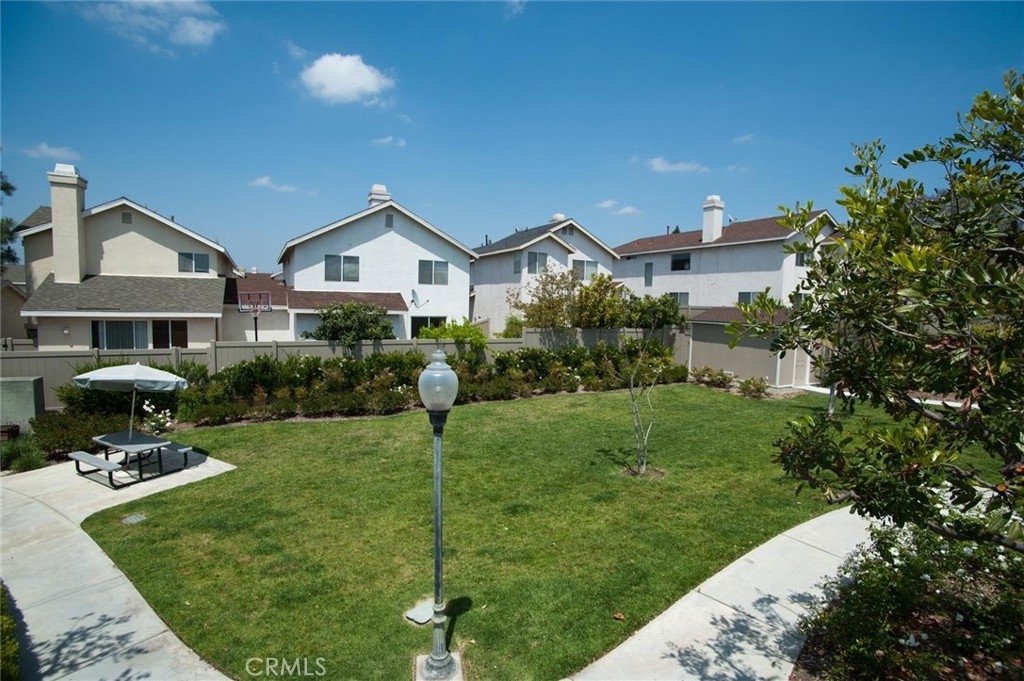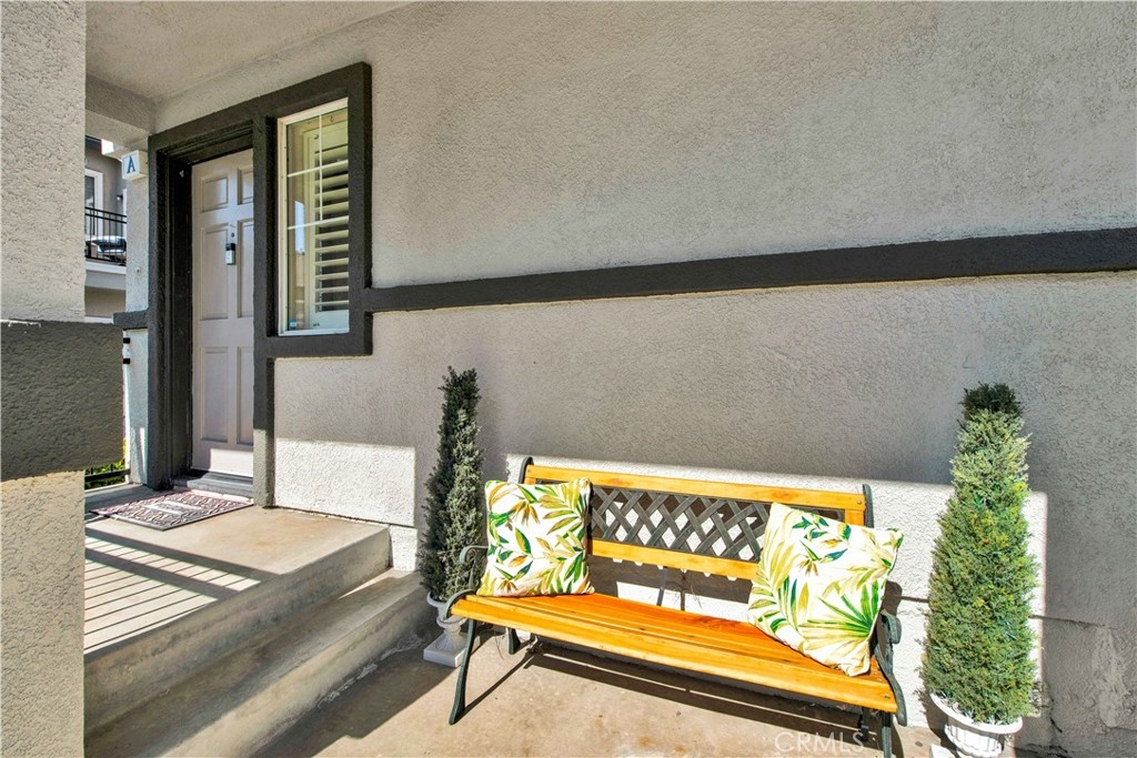 You don’t need a four leaf clover or a lucky charm in your pocket to make your fondest wish a reality. This Westbury end unit townhouse is your pocket full of miracles. The curb appeal is enhanced by a manicured front lawn and a front porch. Sit a spell, greet your neighbors and lift a glass to celebrate your good fortune under a moonlit sky. Now step inside and discover why you want to write your next chapter under these eves. Gleaming bamboo floors serve as the backdrop for graceful living. Soaring ceilings add drama and a sense of additional space. Pass the popcorn on movie nights and romance your sweetie adjacent to the gas fireplace. Adjoining the living room is the inviting kitchen with granite counters, linen white cabinets, stainless steel gas range, dishwasher, built-in microwave, and black, undermount, granite sink. Look up. That’s a tray ceiling with recessed lights and crown molding. Adding to the charm, value and panache’ are new (2022) central air conditioning, plantation shutters, custom built-in cabinet storage, window seat and display shelves, new neutral paint, new carpet, remote controlled ceiling fans, direct access to garage with new (2020) garage door, washer, dryer hookups, wall unit storage and additional under stairway storage. Natural light cascades through the dual pane windows and patio door adjoining the dining area. The primary bedroom features a walk-in closet and an ensuite bath tub/shower combination and dual vanities. Live like a boss. Relax and rejuvenate your spirit at one of the community pools and spas. Get your groove on. Host a party in the clubhouse. Lifestyle enhancements beckon just outside the gate in Grijalva Park. Fitness is a choice and your choices just expanded with walking and biking trails, and free gym equipment within the park. El Modena High, Santiago Middle School and Prospect Elementary offer educational advantages. This association is one of the best maintained in the city with newer roofs, exterior paint and regularly scheduled manicured landscaping. Shops, restaurants, health clubs and easy access to the 5, 55, 91 and the 22 freeways makes for a convenient commute. Life here is your pot of gold at the end of the rainbow. Welcome home