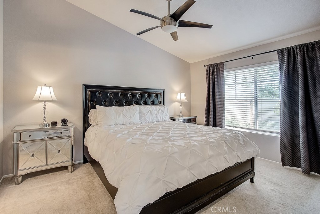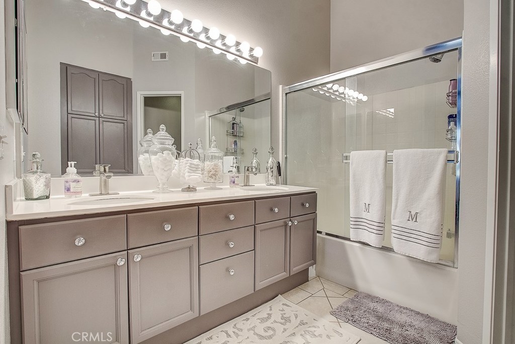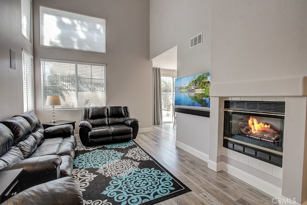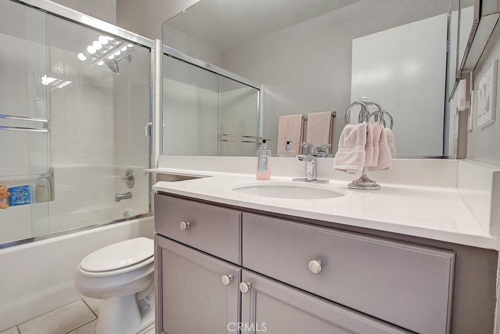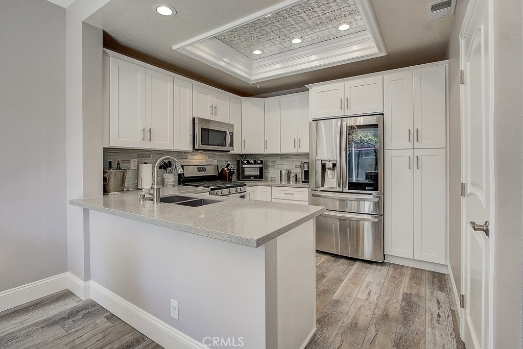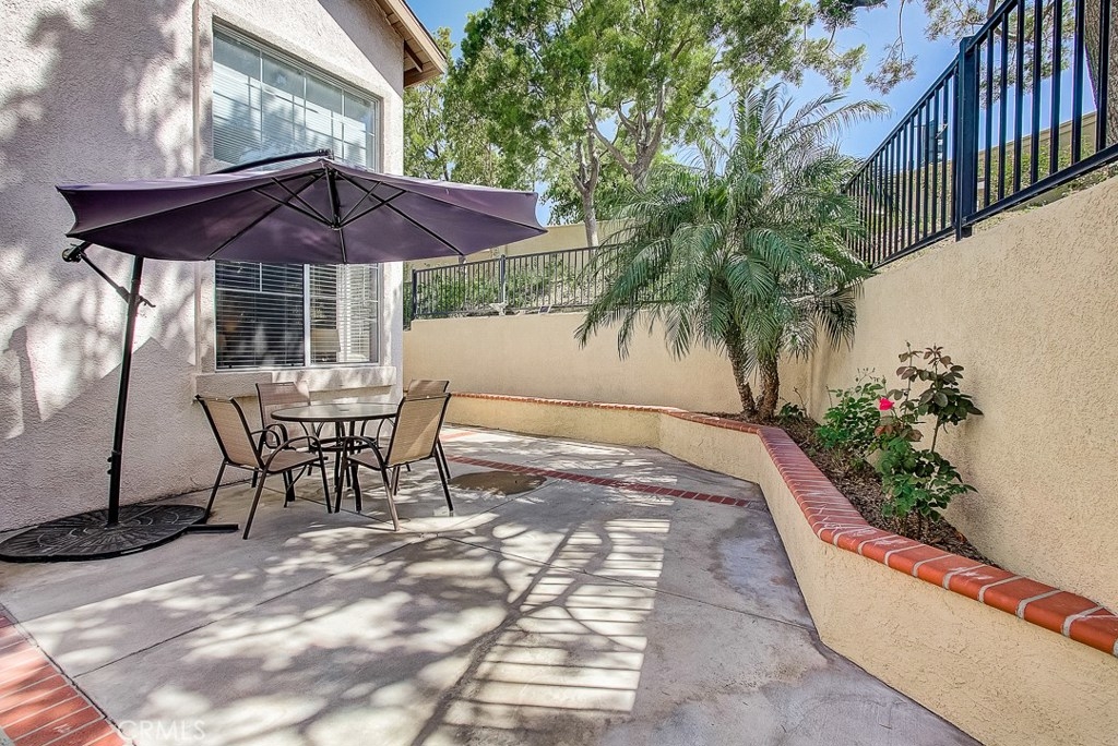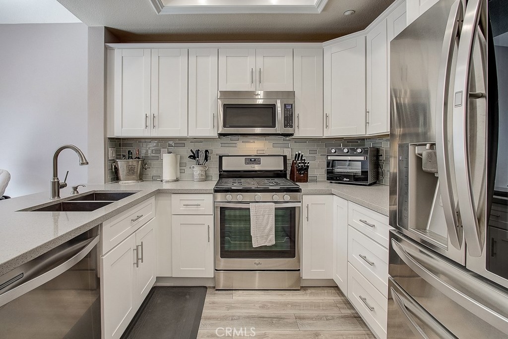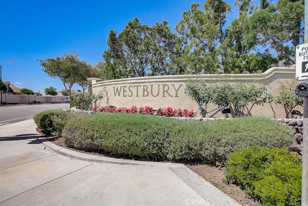 Nestled within the gated community of Westbury, this townhome features gorgeous flooring, soaring, vaulted ceilings and large windows that bathe the interior in natural light. As you enter you will gaze upon an open floor plan allowing the living room, dining area and kitchen to flow seamlessly together. The kitchen features crisp, white cabinetry, gorgeous quartz countertops accented by a mosaic subway tile backsplash, a pantry, stainless steel appliances, a stunning tray ceiling with stamped tin and molding and an eat-at breakfast bar. The main floor bedroom and bathroom will make guests feel welcome. The inside laundry is on the main floor. Dual master bedrooms upstairs provide privacy for everyone. Relax and unwind on the back patio shaded with mature trees. The two car attached garage makes parking a breeze plus extra storage space. Westbury offers its residents a sparkling pool and spa for year-round outdoor enjoyment. Many wonderful parks and open spaces await with miles of trails for you to explore. Blocks from an abundance of shopping, dining and entertainment venues. Quick access to freeways will make community a breeze. Minutes from world class beaches, Disneyland and Knotts Berry Farm too. To see it is to love it!