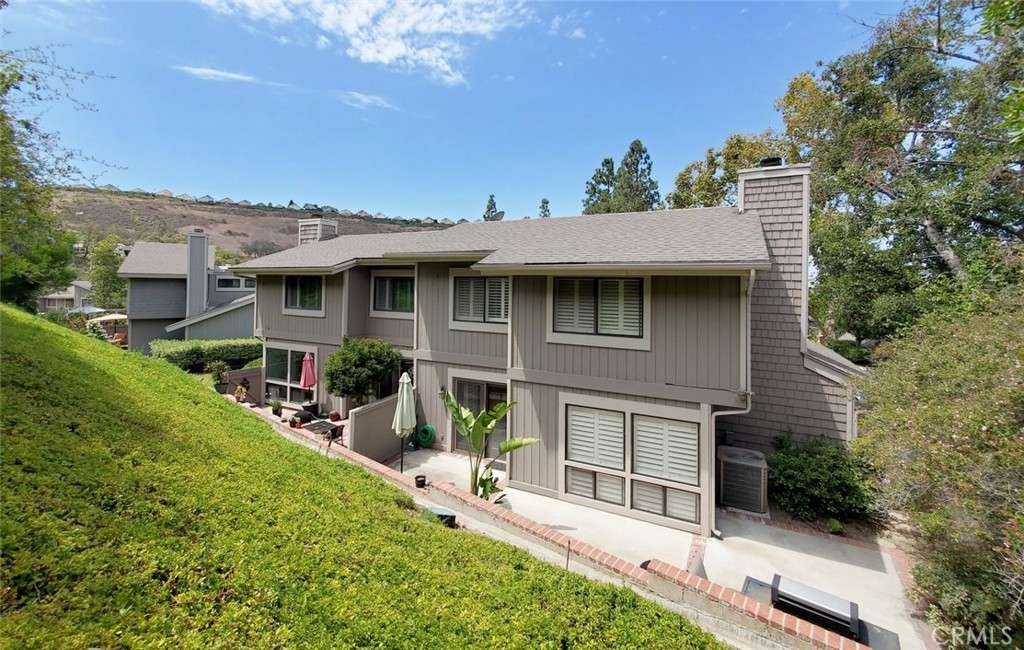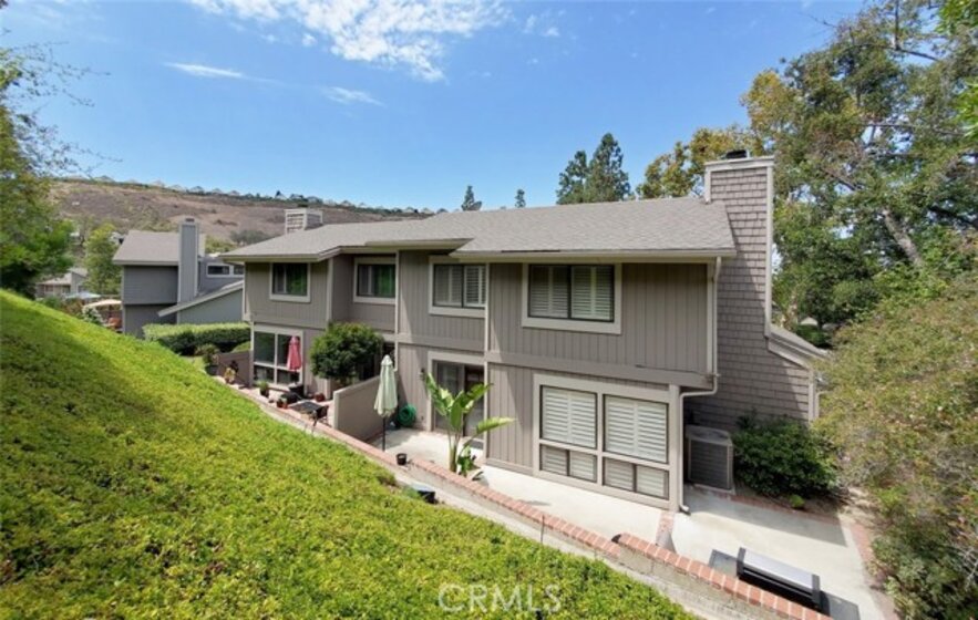 Location!!! Nestle in the hills of Orange is the most private unit you will find in the Chapman Townhomes community. With 3 beds, 2.5 baths, approx. 1856 living sq. ft, and 2 cars garage with 2 cars driveway, this corner unit located conveniently at the end of a beautiful stream, picturesque Orange Hill as your backyard, next to the tennis court, and ample of guest parking, you practically have no neighbors. The open architectural concept provides spacious views between upstairs and downstairs, high ceilings throughout, huge windows with shutters and sky lights let the natural light shine throughout the home.