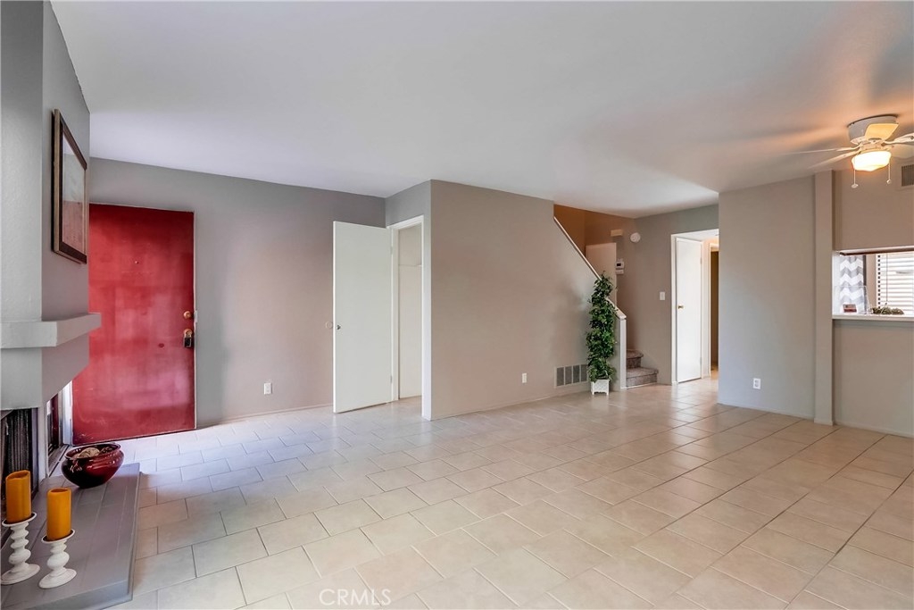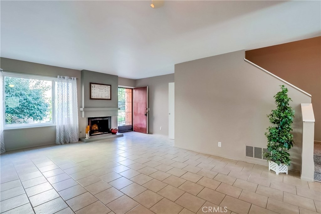 Come check out this freshly updated 2 bedroom, 1 1/2 bath home in the beautiful city of Orange! You'll love the large living room with cozy fireplace, perfect for chilly evenings, and a picture window overlooking the greenbelt. Kitchen has wood cabinets, white counters, dishwasher and a peek-a-boo view of the living room. Upstairs you'll find 2 large bedrooms and a full bathroom. Bathtub/shower has been updated with beautiful new tile. Washer and dryer hook-ups are in a closet area in the upstairs bathroom and have builtin shelves for storage. Upstairs has new, grey, carpet throughout and downstairs features tile. Fresh paint is throughout the home. A slider leads to a private, enclosed patio area with storage and direct access to the carport with 2 assigned spots. HOA includes guest parking, BBQ area, picnic tables, pool, and spa. Convenient access to river trails and bike paths. Close freeway access and near Angel Stadium, the Honda Center, Main Place Mall and much more.