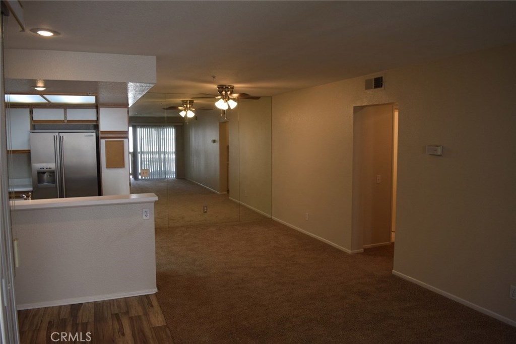 Ready to move in beautiful 2 bedroom 2 bath condo. Newly painted and carpeted with vinyl flooring in kitchen and entry. The stainless steel refrigerator and side by side washer and dryer are included. This single level end unit with no one above, has a spacious balcony and comes with side by side single car garages, perfect for 1 car and storage, or 2 cars. Open floor plan with ceiling light fan fixtures. This highly desirable condo is located in Canyon Hills community. The association features resort-style amenities including two large swimming pools, spa, full workout gym and clubhouse to host parties or family holiday events. Close to shopping, easy access to the toll roads, Peters Canyon, Santiago Canyon College, and an award winning elementary school. Priced to sell, won't last. Submit.