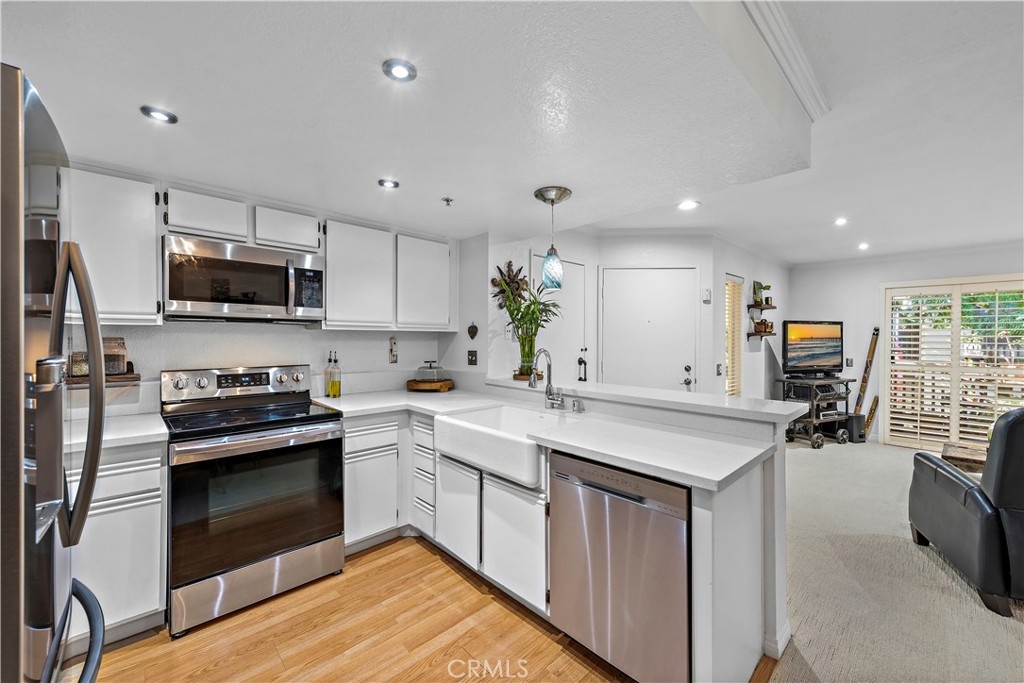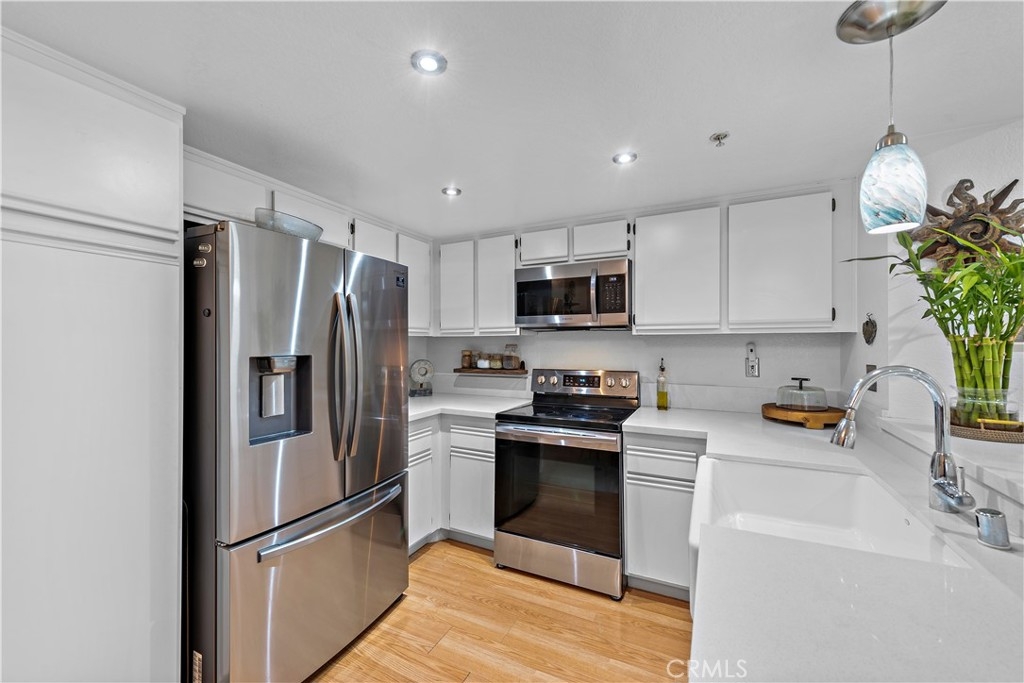 Gorgeous updated 1 bedroom upper level condo in scenic Santiago Hills! Fresh white kitchen cabinets, smooth white Quartz countertops, recessed lighting, large kitchen pantry and more! Stainless Steel Appliances included. Don't miss the enormous patio with 2 sliders each with plantation shutters. Stackable washer and dryer conveniently located in unit. The Bathroom features a large walk in closet and sparkling tub with glass door. It is absolutely turnkey, just bring your pillow! The roof was replaced by the HOA just 2 years ago! 1 car detached garage with a shelf allows for lots of storage for every adventure, 1 additional parking permit included and plenty of open parking! The community features two sparkling Pools and Spas, a Gym and Clubhouse available for rental. Steps away from Peters Canyon Park offering hiking, cycling, and abundant wildlife. The surrounding Santiago Hills community also provides miles of paved walking trails and community parks for outdoor gatherings. Nearby Irvine Regional Park hosts the local Farmers Market every Tuesday, pony rides, train rides, Seasonal Pumpkin Patch and Christmas Tree Lot! Can't miss this opportunity to call Canyon Hills home! Convenient access to toll roads and freeways allows for quick commutes to virtually anywhere in the County. Meet your friends for a mountain bike ride and then relax by the sparkling community pools and spas. Close to shopping and a quick drive to the beach, mountains or Disneyland.