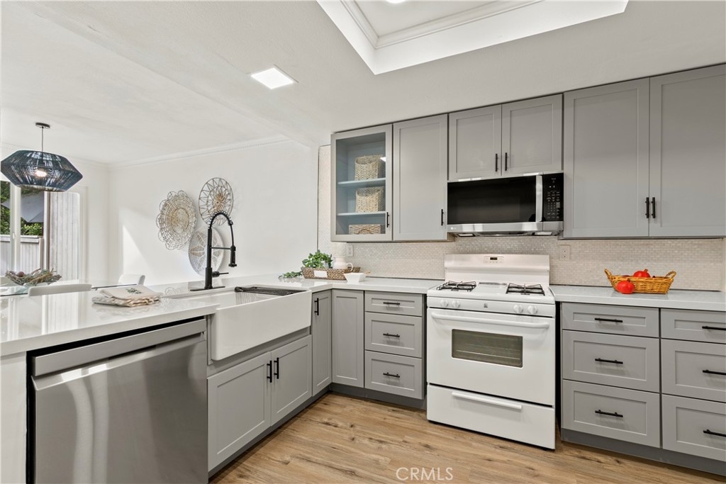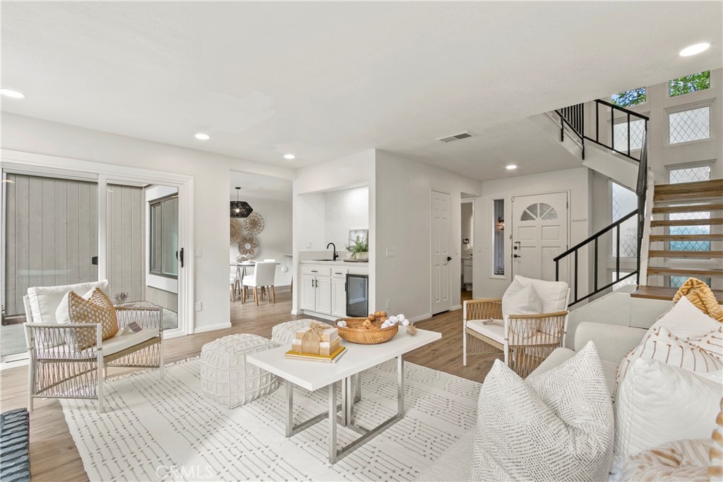 Bright, open, and full of natural light — this 3 bed, 2.5 bath townhome in one of Orange’s most sought-after communities is designed for easy, modern living. Step into a welcoming floor plan where clean lines, updated flooring, and sun-drenched spaces create a calm, stylish backdrop. The living room invites you in with a cozy fireplace and oversized windows, while the remodeled kitchen delivers both charm and function with granite counters, a farmhouse sink, generous storage, and a breakfast bar perfect for coffee mornings or wine nights. You’ll love the bonus built-in wine bar with a wine fridge — a great touch for entertaining. Upstairs, the spacious layout continues with three large bedrooms, including a light-filled primary suite featuring vaulted ceilings, double closets, and an oversized en-suite bath. Unwind on the private enclosed patio, enjoy direct access to your two-car garage, and take advantage of the community pool, spa, and beautifully maintained grounds. Just minutes from Old Towne Orange, Chapman University, shopping, dining, and major freeways — this is your chance to own a home that blends comfort, convenience, and SoCal lifestyle.
