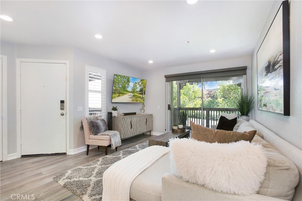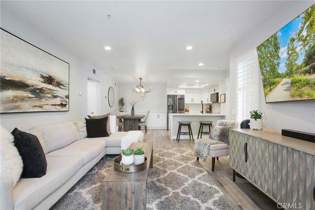 Welcome to your dream home in the serene Canyon Hills community! This beautifully designed condo offers the perfect blend of comfort and convenience, featuring a single-car garage for ample storage and easy access. This elegant unit includes one large bedroom and one full bathroom, LVP flooring throughout, recessed lighting, custom fixtures, and decorator blinds & shutters making it ideal for a first-time homebuyer or empty nester. The open-concept kitchen is a chef's delight, fully remodeled showcasing stunning Tokyo Marble countertops with a waterfall edge, new custom cabinetry, a farmhouse sink, high-end black stainless steel appliances, and plenty of storage space. The family room flows seamlessly into an enclosed balcony, perfect for entertaining or enjoying peaceful BBQs surrounded by lush greenery. Additional conveniences include in-house laundry facilities, a NEST system, a Ring doorbell, and access to community amenities such as a swimming pool, spa, fitness center, and clubhouse—everything you need for a luxurious lifestyle. Located near Peter's Canyon Trail, with quick access to toll roads and shopping centers, this home combines tranquil living with easy access to local conveniences. Experience exclusive living in this highly sought-after private location!
