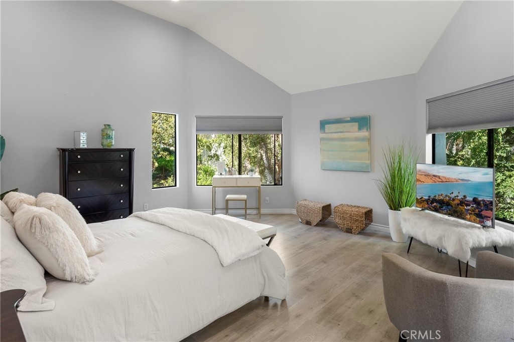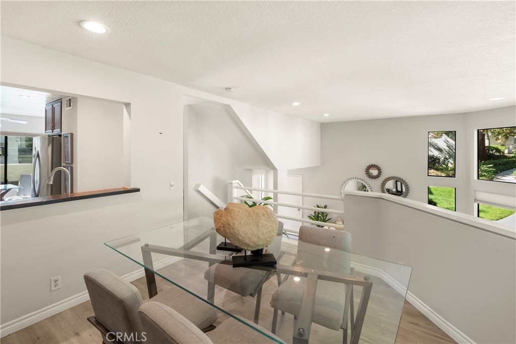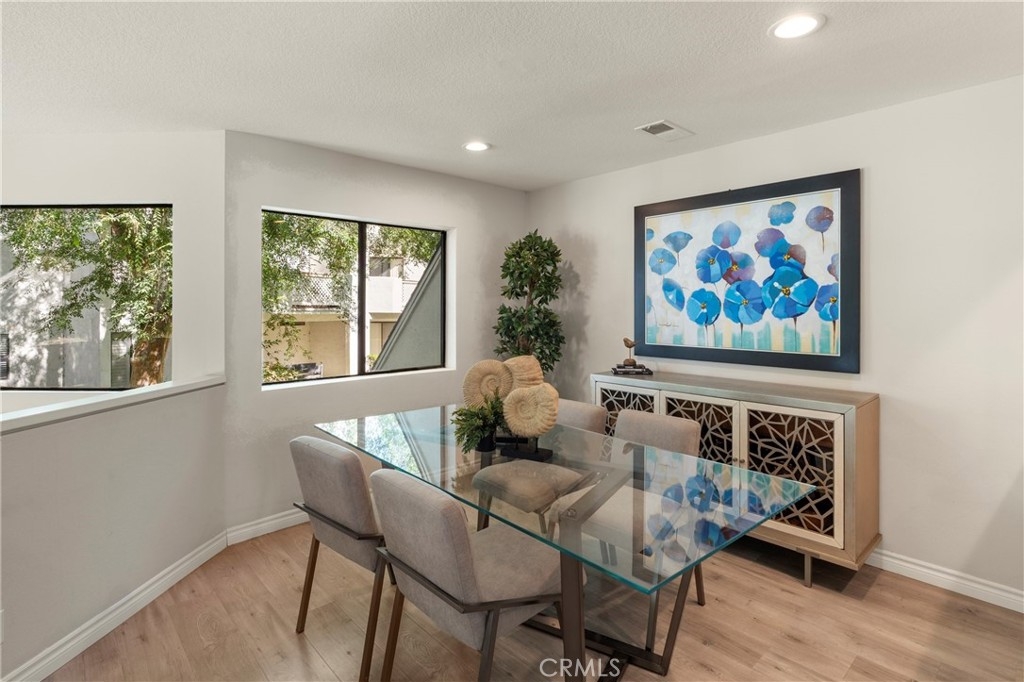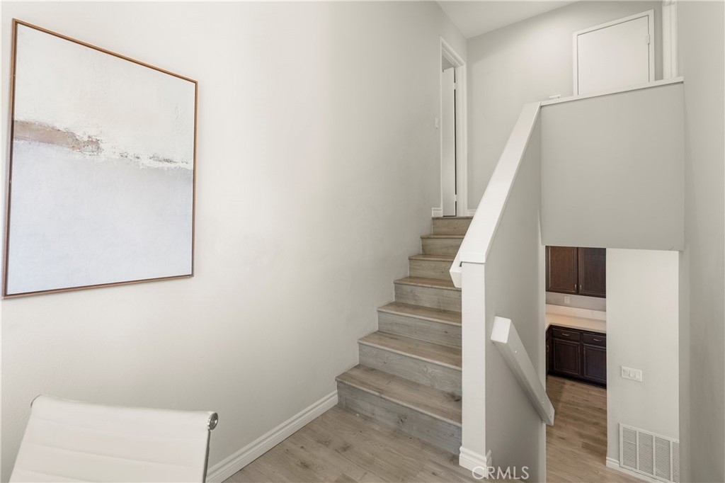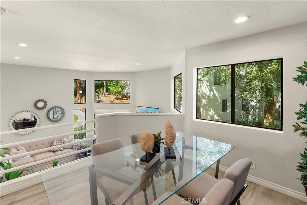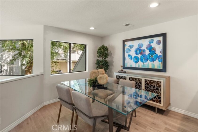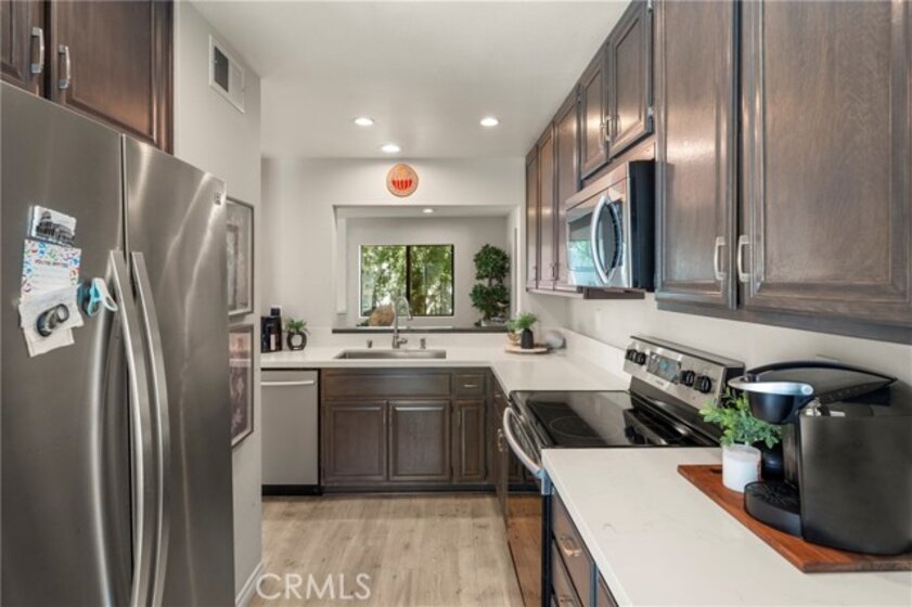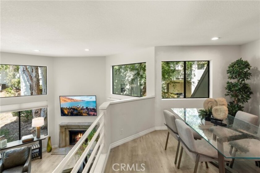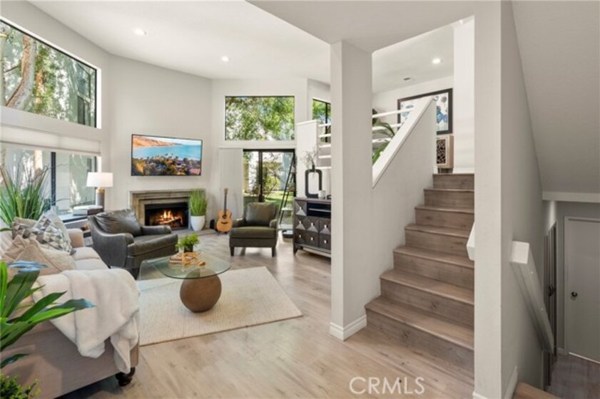 Situated in the sought-after hills of Orange, this stunning architectural residence delivers elevated living with refined design and inviting spaces. Upon entering this two-bedroom two and a half bath home, you're immediately greeted by an open-concept layout with multiple levels featuring a spacious living room with a sliding door that opens to a patio overlooking a green belt with mature trees, perfect for indoor-outdoor living. Expansive windows fill the home with an abundance of natural light, enhancing its warm and inviting atmosphere. The second level overlooks the living room and features a formal dining room area, kitchen has quartz countertops and stainless steel appliances, and flows into a versatile family room or office space with sliding doors leading to a spacious balcony. A separate landing provides the perfect space for a small office or reading nook. Both bedrooms are oversized ensuites, offering ample space, privacy, and an abundance of natural light. Additional highlights include a direct access 2 car garage, inside laundry and a half bath for guests. Home is located near Santiago Oaks Regional Park trails, hiking and bike trails. Resort style pool, spa and barbecues along with another pool and spa just for Stream House residents.