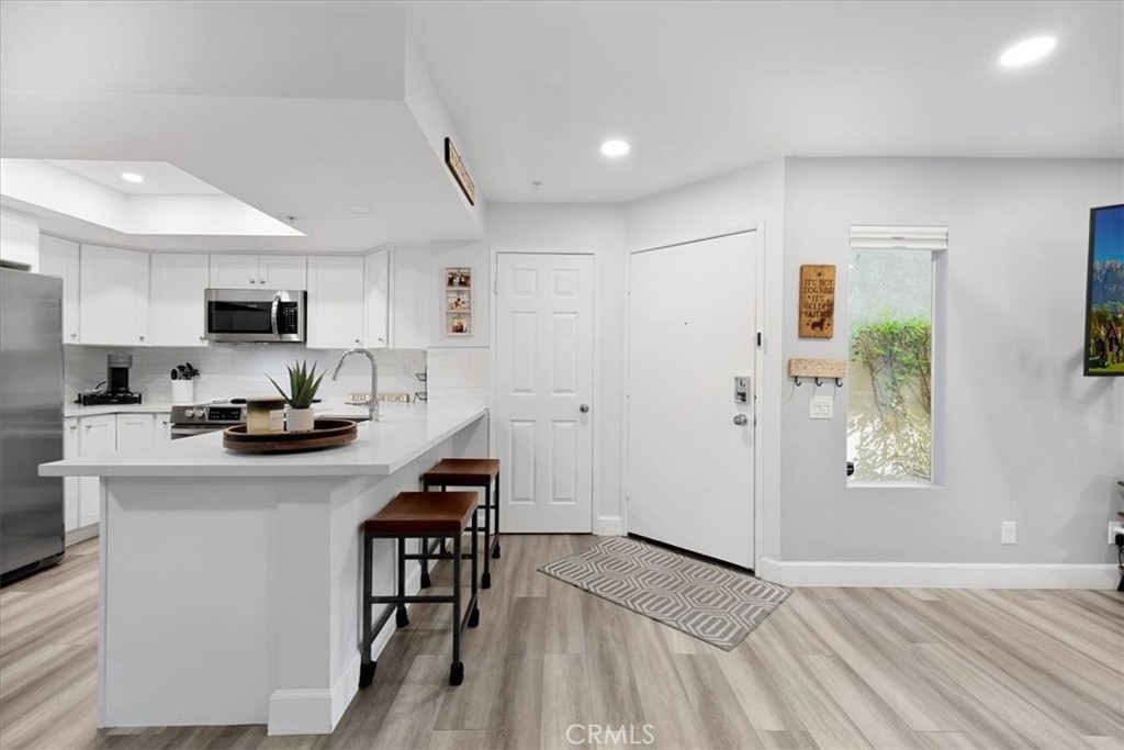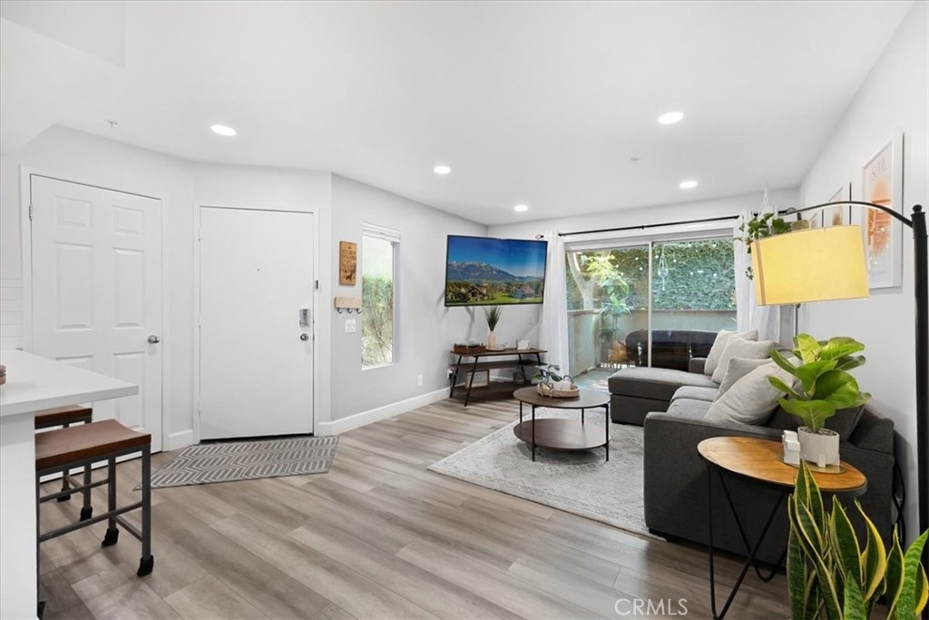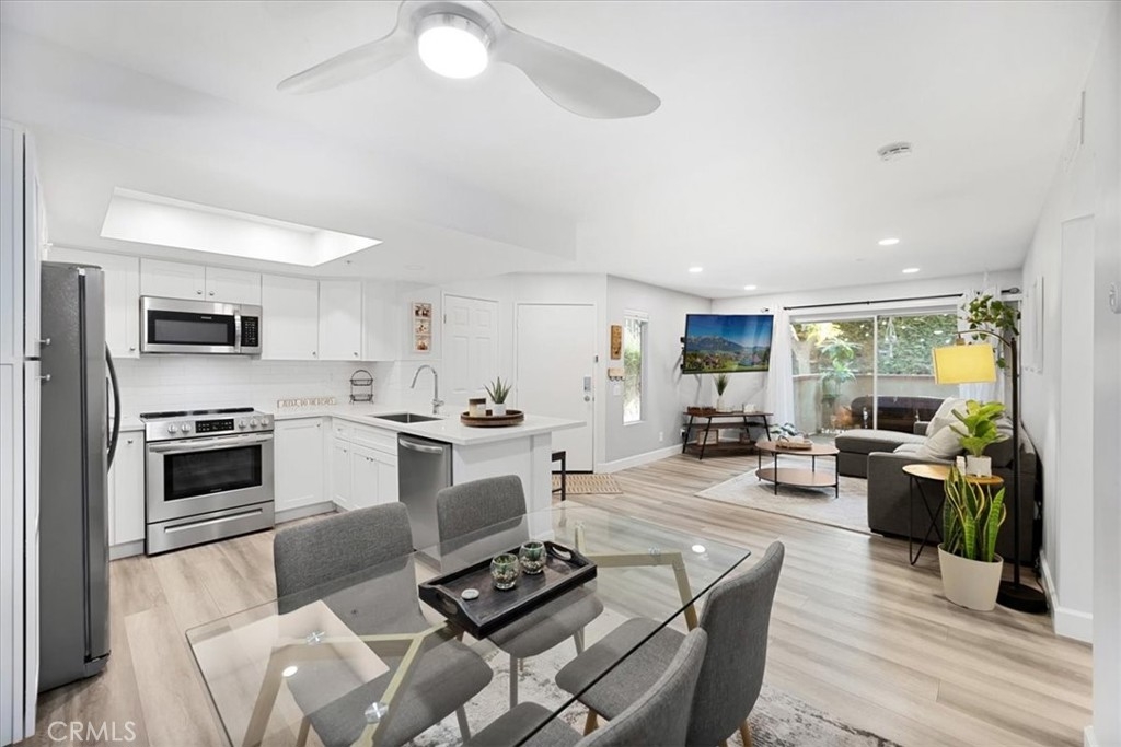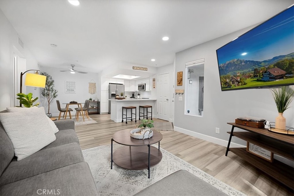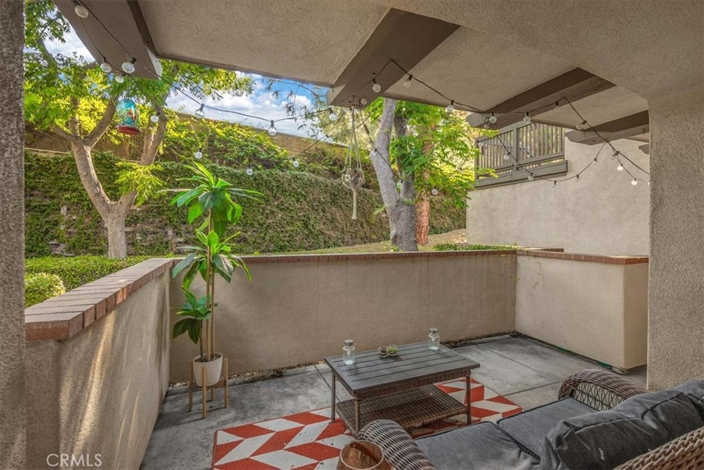 Desirable single-story condominium in the hills of Orange. One of the most private locations of this community. As soon as you step inside, you will feel the openness that is rarely found in a 1-bedroom condo. Natural light flows throughout the entire home. A true great room is defined in the main living space with the living room, dining area and recently and tastefully remodeled Kitchen, newer flooring that gives this home a designer feel. The bright spacious master suite features a sliding door to the private patio and a beautiful barn door to the master bathroom suite that is luxurious as the rest of the home. Featuring an extended bath vanity with quartz countertop, double sinks and walk-in closet. The European style bath is ample, bright and inviting with additional lining storage. Everything is charming and complements the rest of the home, the patio extends the full length of the home with a private serene backdrop. The home has an inside laundry. One Care garage and additional parking spaces available right around the corner. And to top it all, the Canyon Hills community is fully equipped with a clubhouse, gym and 2-swimming pools. This wonderful location is close to Peters Canyon Regional Park, Irvine Regional Park and the Santiago Oaks Regional Park. Great activities, close by shopping, dining, and schools, all conveniently located. The perfect place to live and enjoy, you’ll love it here.