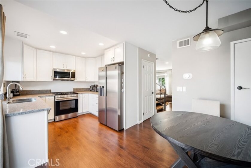 Welcome to Casitas Santiago Townhomes, where modern comfort meets timeless charm. Step inside and experience a bright, open-concept layout designed for effortless living. The living and dining areas flow seamlessly into a stylish, updated kitchen featuring recessed lighting, stainless steel appliances, and a gas range ready for your favorite home-cooked meals. The kitchen opens to a private patio, the perfect setting for morning coffee, weekend barbecues, or quiet evening conversations under the stars. Downstairs, a convenient half bath adds ease for guests, while upstairs you’ll find three spacious bedrooms and a full bathroom offering comfort and privacy for everyone. A detached two-car garage provides ample storage and laundry space, while central air and dual-pane windows keep your home comfortable and energy-efficient year-round. With a low monthly HOA, residents enjoy beautifully maintained grounds and a welcoming community atmosphere. Ideally located within walking distance to Esplanade Elementary, Santiago Middle, and El Modena High, this home also offers unbeatable proximity to Old Towne Orange, Irvine Park, shopping, dining, and major freeways and toll roads. Discover a place where comfort, convenience, and community come together, and start creating lasting memories in your new home at Casitas Santiago.