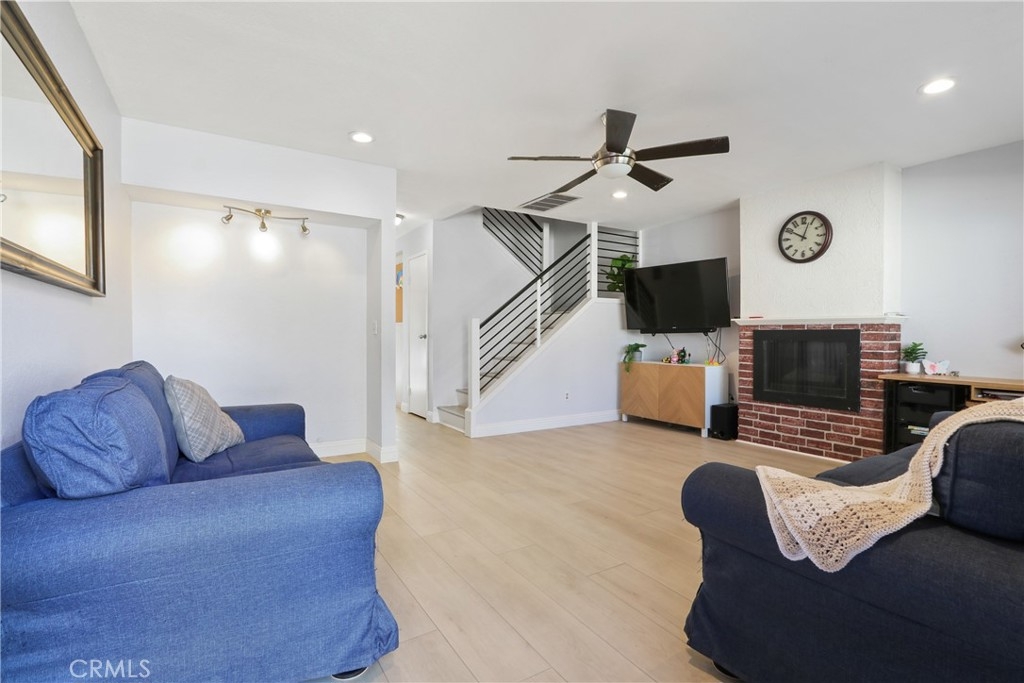 Beautiful 2-bedroom, 2 bath, 1 car garage with covered carport located inside the gated community of Vista Monterey in the wonderful city of Orange. It all starts as you walk in the front door with a large living room with a cozy fireplace. Adjacent you will see a nice size kitchen with plenty of cabinets and counterspace, tile flooring with an ample size dining area leading you right to the spacious backyard patio and garage. As you continue upstairs you will notice 2 large bedrooms with the primary suite with an ensuite bathroom walk in closet and secondary closet space. This gem of a home has plenty of upgrades including's luxury vinyl flooring throughout the house, central air/heating, custom painting, beautiful custom staircase, ceiling fans, recessed lighting and direct access to the garage and covered carport. Just too much to mention. Bring your fussiest client. This one will not disappoint. The Vista Monterey gated community offers a pool with spa, clubhouse and lush green belts located near historic downtown, restaurant's shopping centers, main place mall, easy access to freeways and conveniently located next the children's hospital, Choc. Hurry this one will not last!