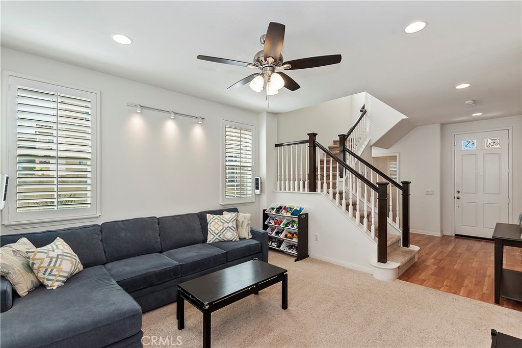 Welcome to this fabulous, turn-key, move-in ready two-story condo with 3 bedrooms and 3 bathrooms in the sought area of Orange. The home has an attached two car garage and a manicure front yard with a bonus of a built-in home gym located in the garage (pls see pic). Home features some tech upgrades…WIFI-Thermostat, Ring Doorbell, WIFI-Garage Door Opener and two wired cameras As you enter the home, you are greeted by the open spacious entry way that leads to the living room with large custom plantation blinds and windows that let in lots of natural light, from the meticulous curb appeal and quiet neighborhood, you will immediately fall in love with this home. From the living room you have direct access to a private enclose patio. As you walk through the home you will notice many upgrades, central AC/ heat, recess lighting throughout, home water softener system and a filtered water drinking faucet. The kitchen features dark wood cabinets, stainless steel appliances, backsplash, countertops and wood floors. Master bedroom features a large closet with a connected master bathroom with dual sink, large mirror and tile floors. Down the hall, you will find the second bathroom with the same gorgeous flooring and a bathtub. All bedrooms upstairs are spacious, carpeted and has custom paint. This home is located in front of other homes for easy access and best neighborhood view. Must see it for yourself so you can appreciate the pride of home ownership and the magnificent community.