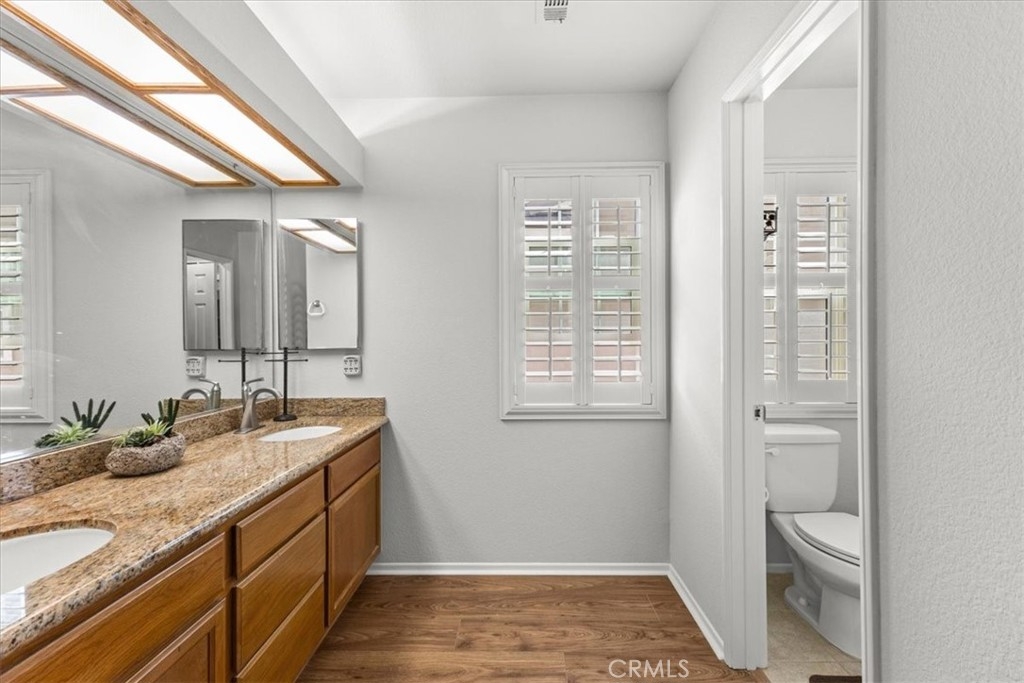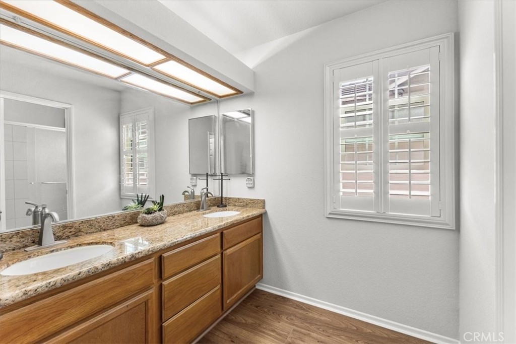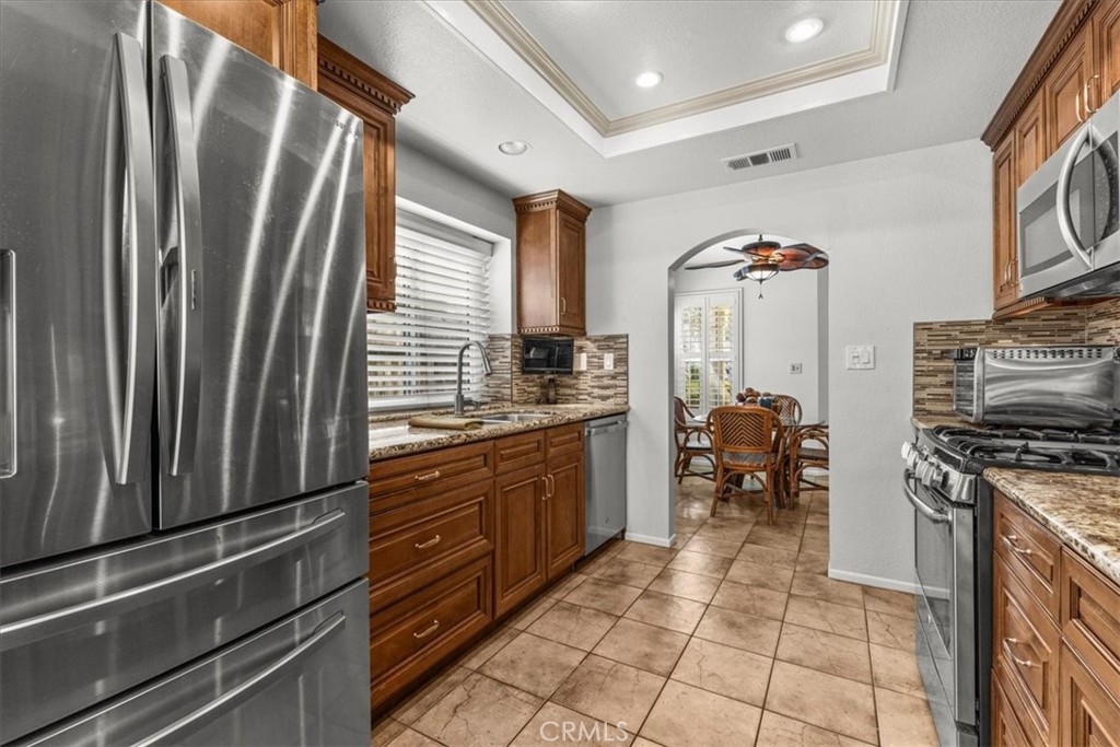Welcome to this updated 3-bedroom, 2.5-bath townhome in the desirable Vista Santiago community of Orange. Offering 1,436 square feet of well-designed space, this home blends comfort, functionality, and a bright, inviting atmosphere. Fresh interior paint and abundant natural light enhance the interior, while granite countertops, stainless steel appliances, a cozy fireplace, and classic louvered shutters add both style and practicality. The layout feels open yet warm, ideal for everyday living and hosting. All three bedrooms are located upstairs, creating a sense of privacy and separation from the main level. Thoughtful upgrades include a newer tankless water heater, Ring doorbell, and a Nest thermostat for added efficiency and ease. An attached garage provides everyday convenience, while the private backyard extends the home outdoors, perfect for relaxing or gathering. Vista Santiago is a well-maintained community known for its manicured grounds, recently resurfaced pool and spa, and an affordable monthly HOA. Ideally located near shopping, dining, schools, Grijalva Park, the Santiago Creek Trail, and major commuter routes, this home offers an opportunity to enjoy low-maintenance living in one of Orange’s most sought-after neighborhoods.
