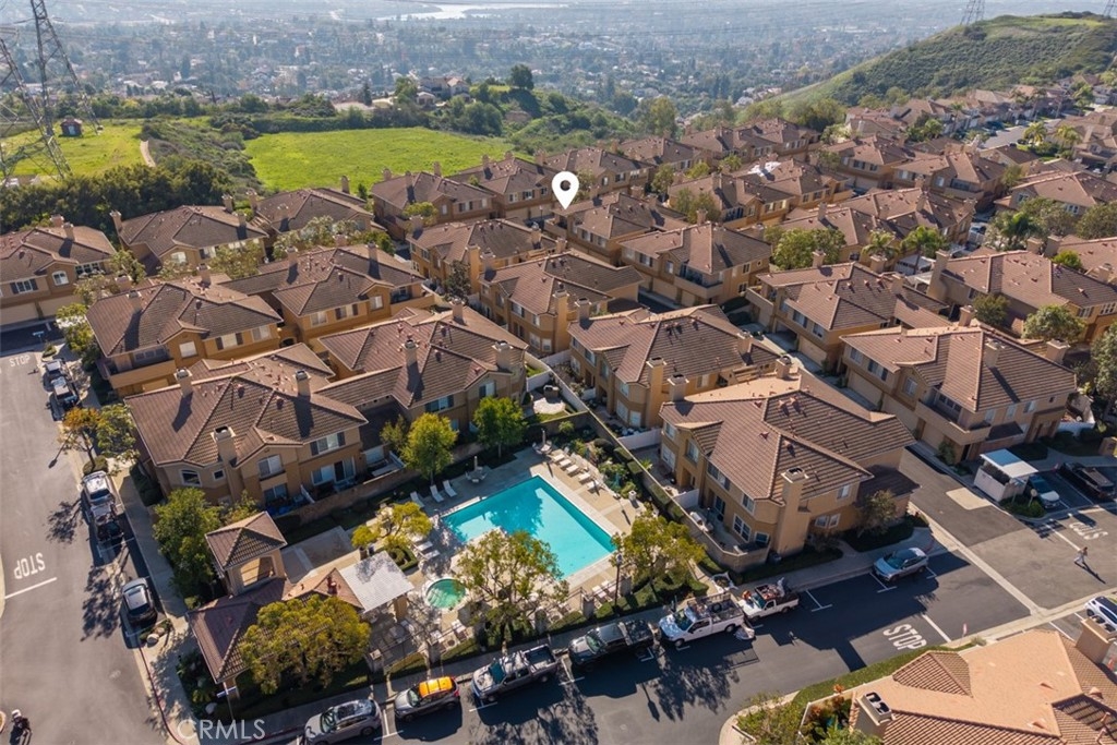 Perched atop Imperial Highway in the highly desirable Bluffs at Belmont community, this beautifully upgraded 2-bedroom, 2-bath residence offers the perfect blend of privacy, comfort, and elevated Orange living. Featuring 1,101 square feet of bright, open space, this upstairs single-level home lives like a private retreat—while still offering the convenience of a prime Orange location. Inside, enjoy high ceilings throughout, upgraded appliances, and granite countertops that anchor the kitchen with timeless style. The open layout is filled with natural light and designed for effortless everyday living, complete with indoor laundry and thoughtful storage throughout. The spacious primary suite is highlighted by a true en-suite bathroom and an exceptionally large walk-in closet, creating a serene, comfortable space to unwind. Step outside to your private balcony with gas hookup, perfect for entertaining, grilling, or simply enjoying the breeze and surrounding views. Central HVAC ensures year-round comfort. A standout feature is the ground-floor entry and direct-access single-car garage, complete with overhead storage and an oversized walk-in closet beneath the staircase—perfect for keeping life organized without sacrificing living space. The well-maintained HOA community offers resort-style amenities including a gated key-fob access pool and spa, loungers, bathrooms, and an outdoor shower. HOA dues are $372/month and include trash, with plentiful permit parking available. Enjoy unmatched access to the outdoors—just moments from miles of hiking, mountain biking trails, Santiago Oaks Regional Park and Belmont Park, featuring trails, a playground, BBQ areas, and sweeping scenic viewpoints. On clear days, take in incredible vistas stretching to San Clemente Island and Santa Catalina Island, plus snow-capped mountain views beyond Yorba Linda. Ideally located with easy access to both the 91 and 55 freeways, and surrounded by numerous nearby grocery stores, shopping, and restaurants. A rare opportunity to own a turn-key home in one of Orange’s most scenic hillside communities.