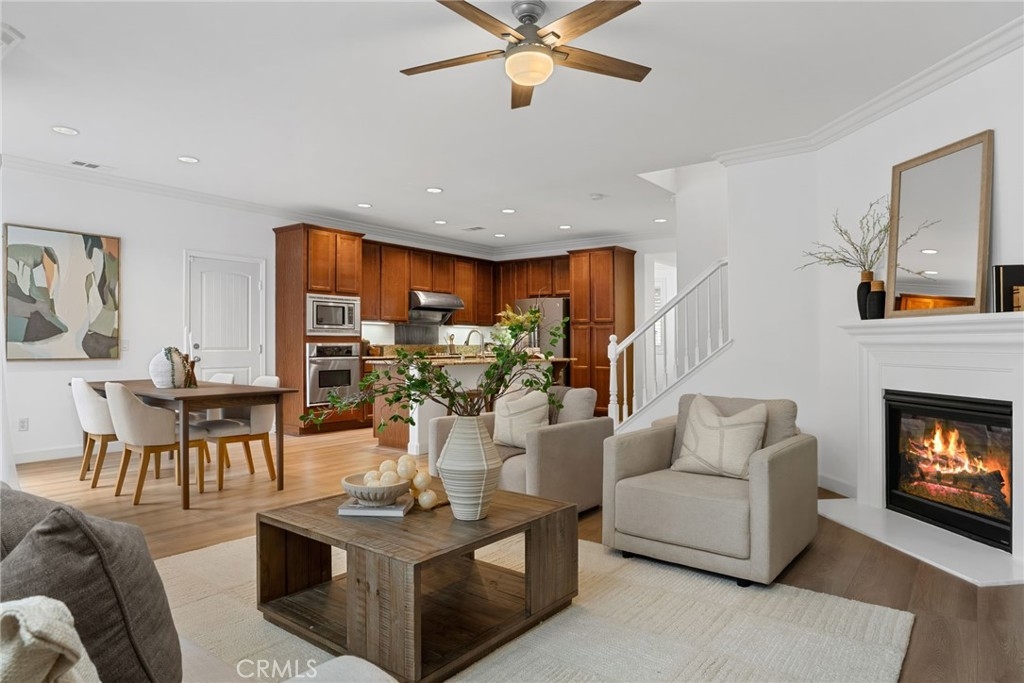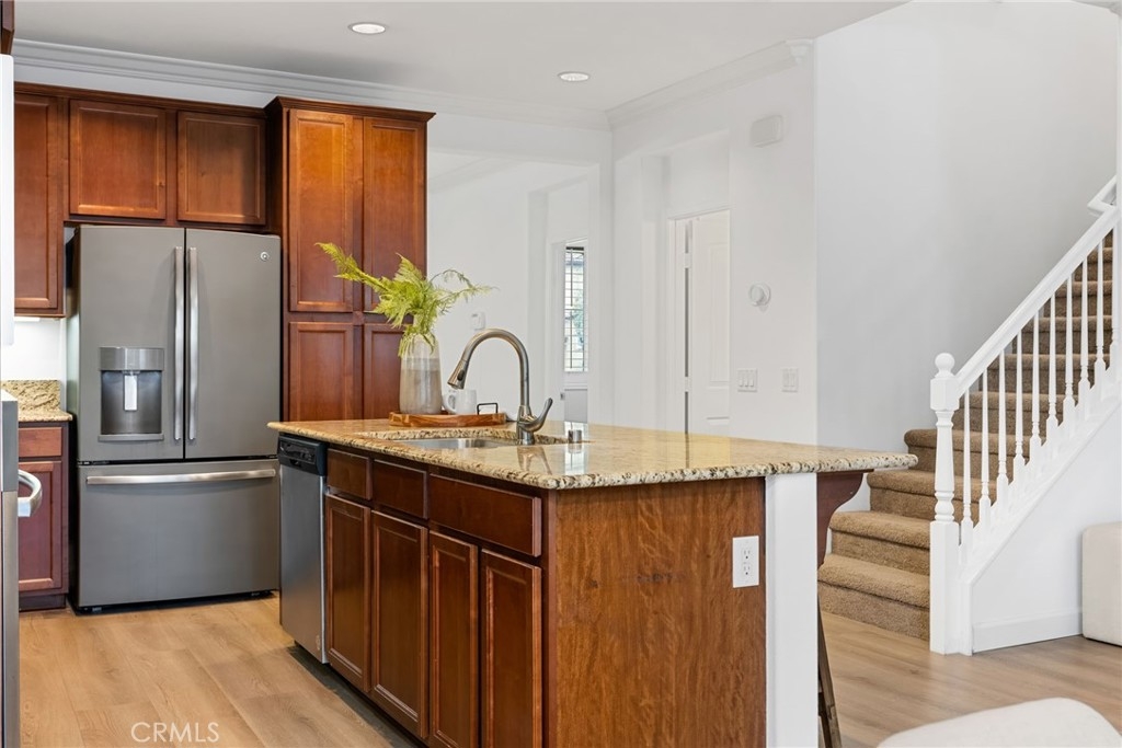 Welcome to this stunning detached family home located in the highly desirable Riverbend community. Situated on a premium corner lot, this home offers 4 bedrooms, 3 bathrooms and approx. 2,254 sqft of thoughtfully designed living space, blending comfort, funtionality and modern elegance. The open-concept layout features a bright and airy family room with a cozy fireplace that flows seamlessly into the kitchen, complete with a center island, granite countertops, stainless steel appliances, ample cabinetry and prep space. The downstairs bedroom with an adjoining bathroom is ideal for guests while the formal dining room is perfect for hosting family gatherings and holiday dinners. Private backyard is great for outdoor entertaining and everyday relaxation. Upstairs, the expansive primary suite features dual vanities, a soaking tub with separate shower and a large walk-in closet. Two additional bedrooms, a full bathroom and a spacious bonus room offers endless possibilities-a media room, home office or gym. Residents of Riverbend enjoy resort-style HOA amenities, including a sparkling pool and spa, parks, and picturesque hiking and biking trails along the Santa Ana River. A wonderful opportunity to experience community living at its finest. This home truly has it all.