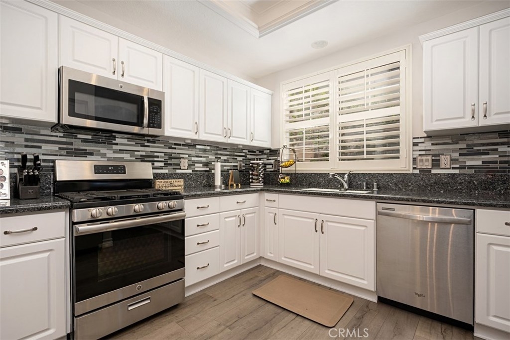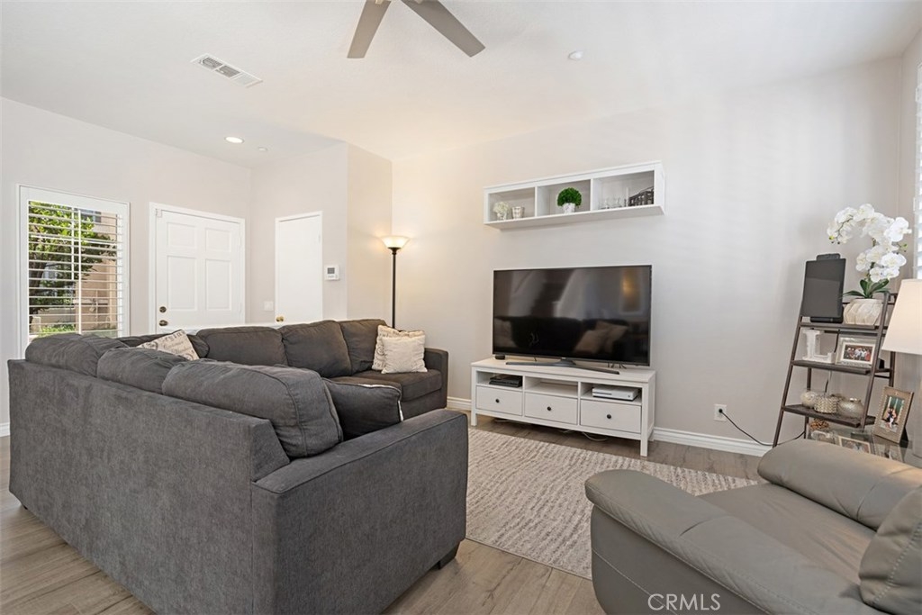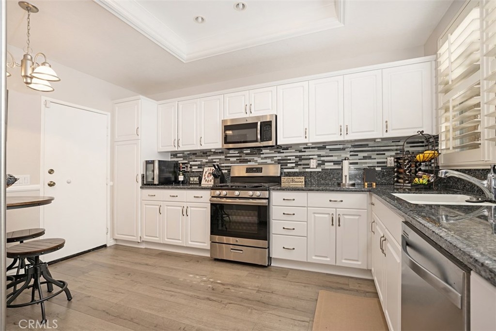Modern, updated 3 bedroom, 2.5 bath town home with designer touches throughout! Completely private end unit perfectly situated in a prime location on private Cul-De-Sac in a beautiful resort-style gated community! Charming entrance into this beautifully sunlit home featuring rich laminate flooring throughout unit. Huge kitchen and separate ample dining room. Kitchen has white cabinets, mosaic tile back splash, granite, and stainless steel appliances. Expansive living room contains windows and soaring ceilings which provide a copious amount of natural light. Ceiling fans in all the rooms. Generous, private master suite features a vaulted ceiling, large walk-in closet, and a decadent master bathroom with dual sinks. Plantation shutters to adorn the windows. The two additional bedrooms are spacious. Convenient direct access over-sized, 2 car garage with space for storage. A great size patio, perfect for entertaining family and guests. AC unit is 1 year new. HOA features 2 pools, 2 spas, and club house for your special events. HOA dues include water and trash. Located within minutes of Grajalva Community Sports Park/Gym, Santiago Bike Path, Grocery/Shopping Center and a wide variety of dining options. Old Town Orange and Chapman University are in close proximity. Easy access to freeways