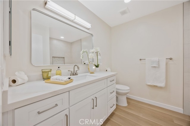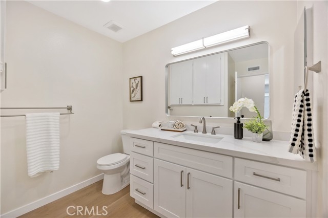 Fully Remodeled Condo in the Heart of Orange! Welcome to this beautifully updated 2-bedroom, 2-bath upstairs unit offering modern comfort and convenience. Step inside to find fresh paint, new LVP flooring, recessed lighting and dual-paned windows throughout. The stunning kitchen features brand-new cabinets, quartz countertops and stainless steel appliances, perfect for the home chef. Both bathrooms have been completely remodeled with porcelain tile, new vanities topped with quartz, updated fixtures and modern finishes. The spacious primary suite includes a walk-in closet, remodeled en-suite bathroom with a walk-in shower, updated vanity, and a linen cabinet for extra storage. Both bedrooms are equipped with ceiling fans and the home now boasts the convenience of inside laundry! Enjoy the benefits of a one-car garage and community pool. Plus a prime location just minutes from freeways, shopping, dining and entertainment - and a short drive to Chapman University, the Orange Plaza, Honda Center, Angel Stadium and Disneyland! Zoned for highly rated schools including Villa Park High School, Cerro Villa Middle School and Fletcher Elementary - dual immersion Mandarin program. Don’t miss your chance to own this move-in-ready gem. Schedule your showing today!