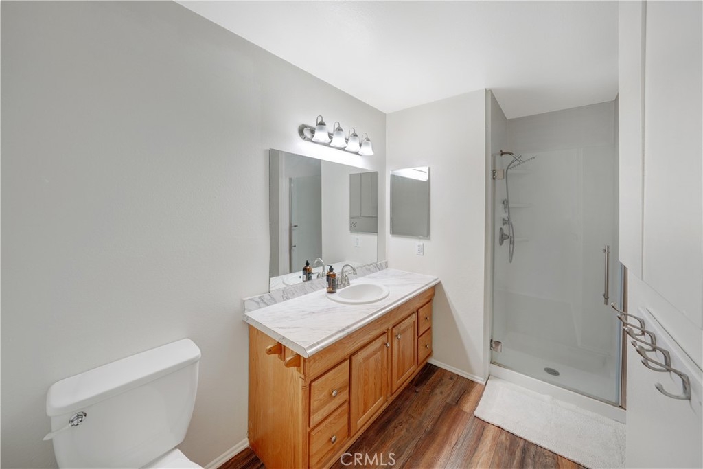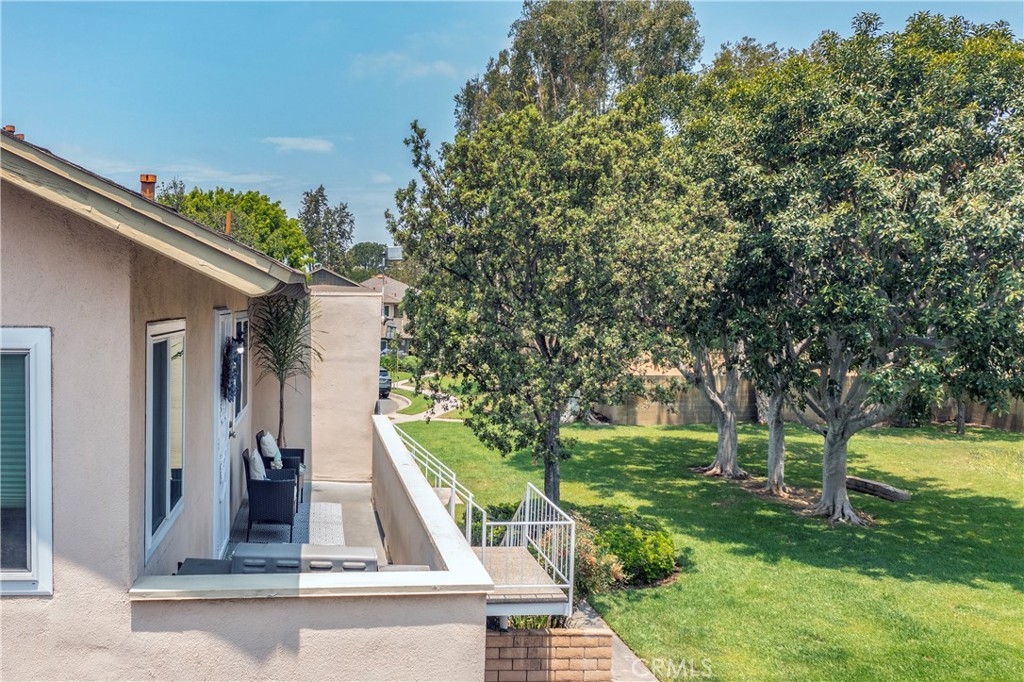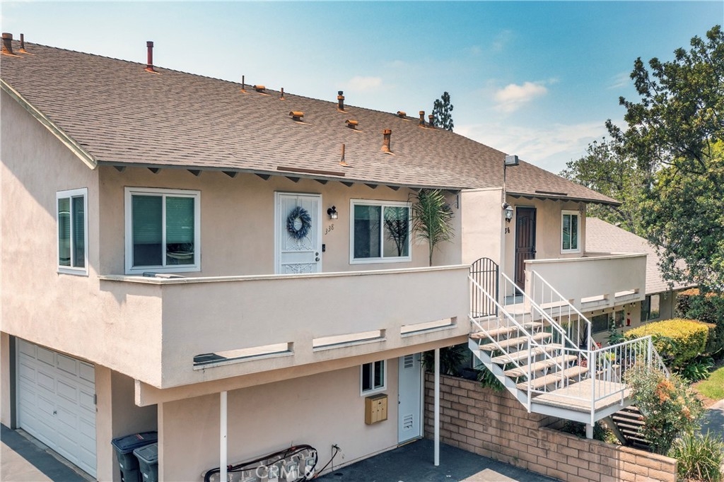 Welcome to this beautifully updated 2-bedroom, 2-bathroom condo nestled on a tree-lined cul-de-sac just minutes from historic Old Towne Orange! This tucked-away upstairs end-unit features two bedrooms, two full bathrooms, a remodeled kitchen with dining area and a front patio. The spacious living room features a ceiling fan, natural light and plenty of wall space for a flat-screen television! The well-appointed kitchen boasts granite countertops, plenty of cabinet space, stainless steel appliances, and plenty of storage space. Enjoy your morning coffee or evening beverage on your private patio, ideal for outdoor dining or relaxation. The primary bedroom is generously sized with a walk-in closet and an en-suite bathroom featuring a spacious walk-in shower. The second bedroom is perfect for guests, a home office, or a growing family. This condo also features central heating and cooling, one space in a shared garage, and one permitted parking space. Residents will enjoy access to community amenities, including a sparkling pool. Situated in a prime location, this home is just a short drive from schools, shopping, dining, and entertainment options. Plus, with easy access to major freeways, you’re just a short commute from surrounding areas like Anaheim, Santa Ana, and beyond. Whether you’re a first-time homebuyer or looking to downsize, this charming condo is the perfect place to call home!