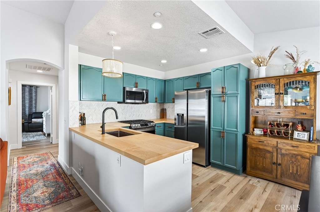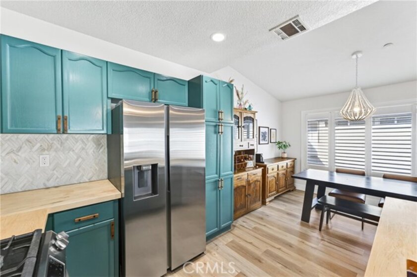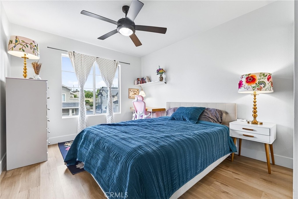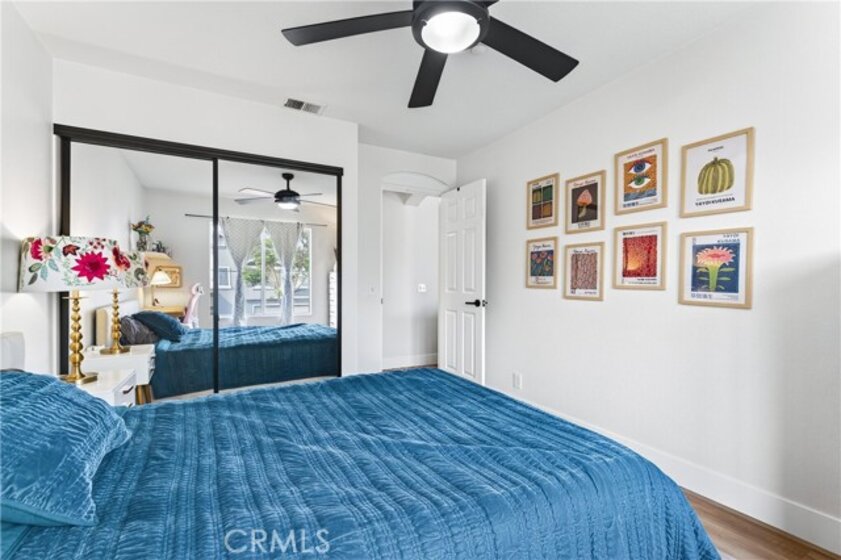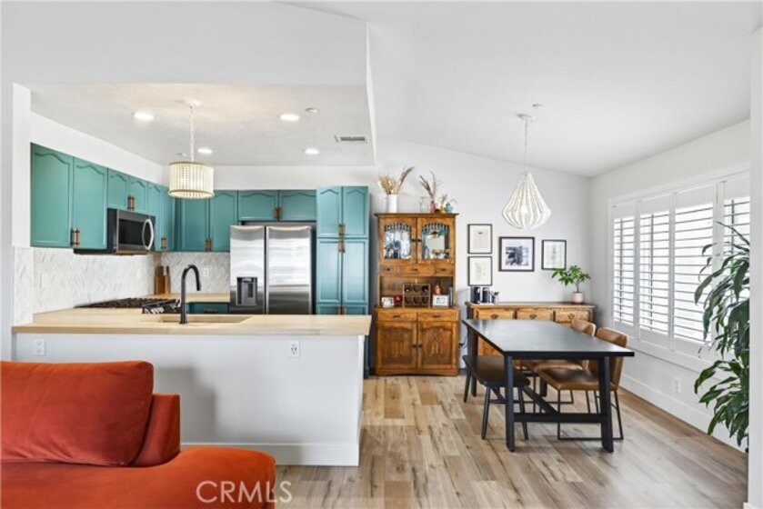 Welcome to this bright and comfortable upper-end condo located in the gated Huntington community of Orange. Offering 2 bedrooms, 2 bathrooms, and 958 square feet of well-designed living space, this home features an open floor plan with vaulted ceilings and a transom window that fills the interior with natural light. Built in 1996, the unit includes a spacious living area, a practical kitchen layout with upgraded appliances and butcher block cabinets. The private primary suite features a walk-in closet, remodeled bathroom and balcony. Other features include inside laundry, update hall bathroom and shutters. The detached 2-car garage is a standout feature, providing secure parking and additional storage. Residents enjoy access to a community pool, clubhouse, and beautifully maintained grounds, and HOA paid internet. Conveniently situated near schools, shopping, restaurants, and easy 55 Freeway access, this home offers comfort, privacy, and everyday convenience in a desirable Orange County location.