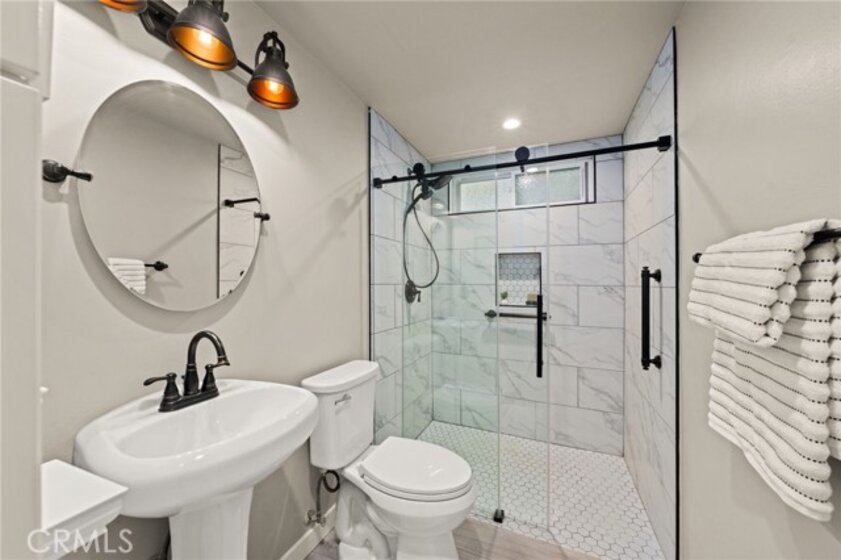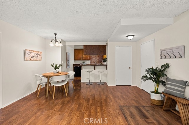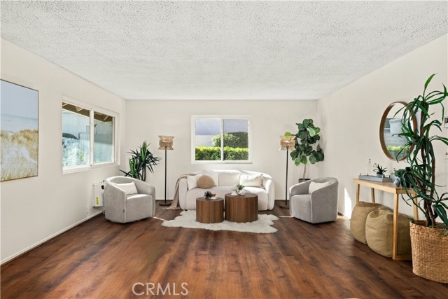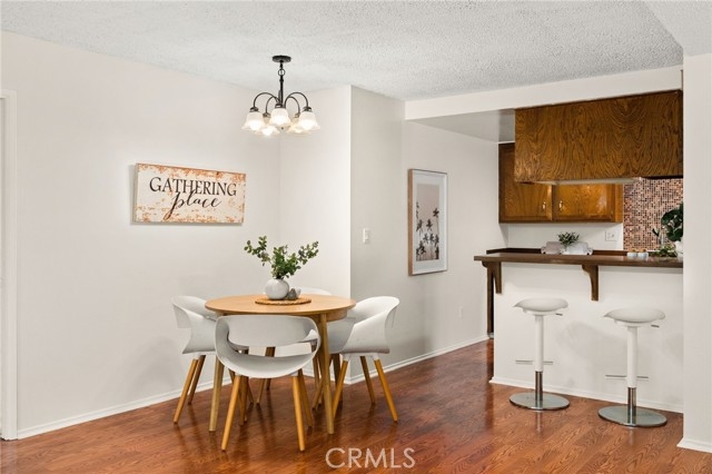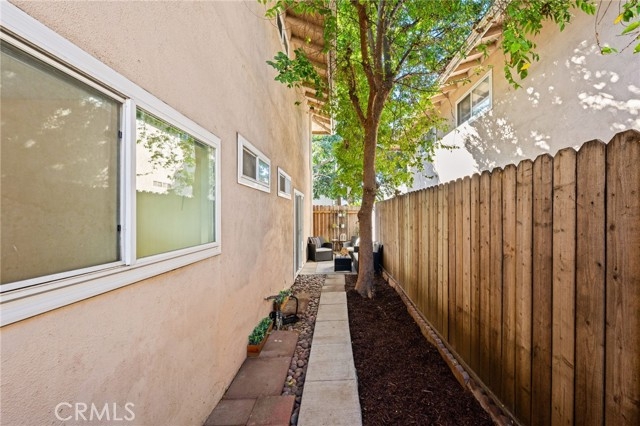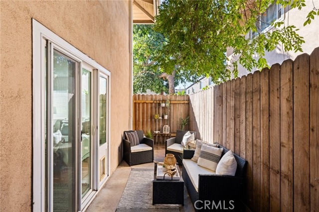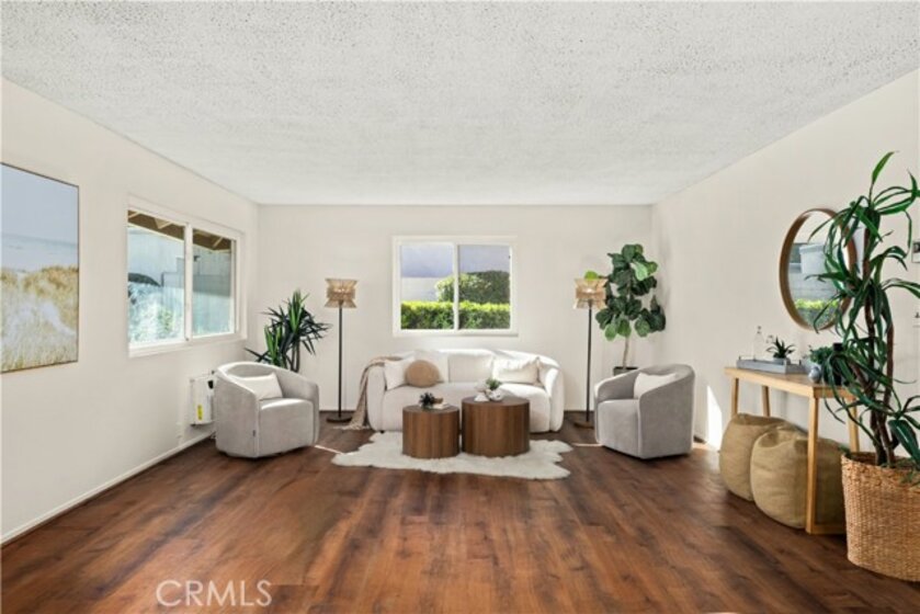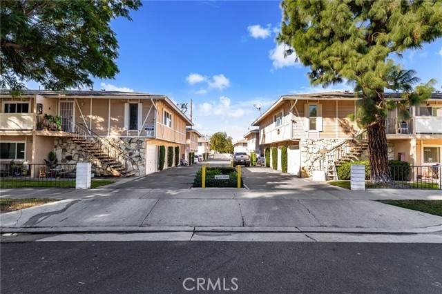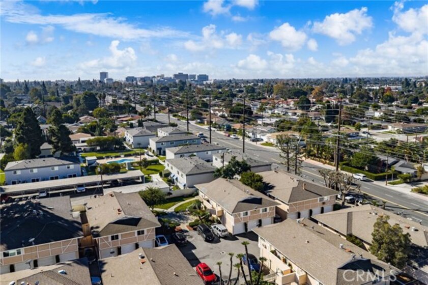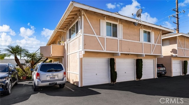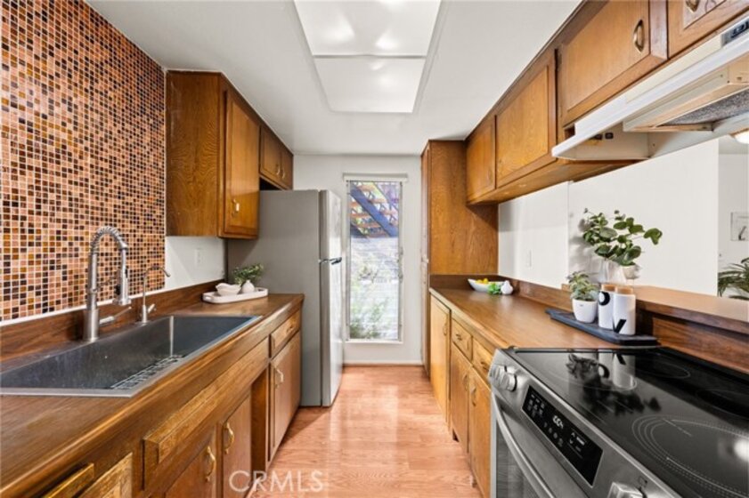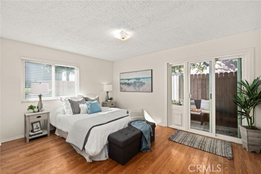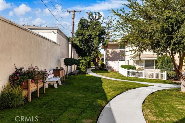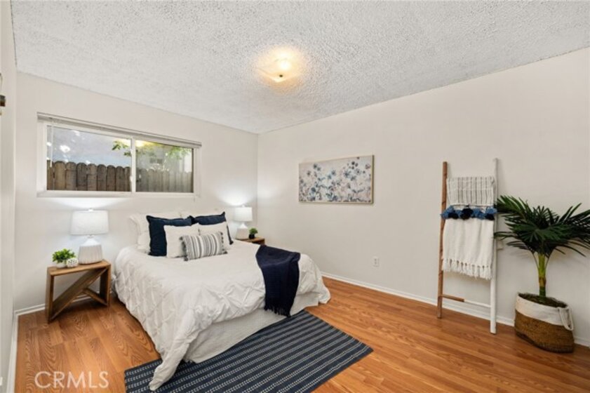 Adorable single level 2-bedroom, 2-bath lower level condo featuring a spacious, light-filled living room that seamlessly opens to the dining area and kitchen. The galley-style kitchen offers ample storage with abundant cabinets and a modern stainless steel single-bowl sink and a stainless steel refrigerator and range. The primary bedroom boasts a full wall of closet space with accordion wardrobe doors, a sliding door leading to the back patio and a private en-suite bath with shower. The generous second bedroom includes a large closet and a window overlooking the patio. Just outside this bedroom is the beautifully remodeled hall bathroom featuring a pedestal sink, a walk-in shower with modern fixtures and a sleek clear glass enclosure. The condo offers potential to add a third bedroom. Condo has recently been painted(interior) and laminated wood floors throughout. Step outside to your private backyard patio, shaded by a mature tree and finished with a concrete surface, perfect for relaxation. Additional amenities include an attached one-car garage, community laundry, pool, and guest parking. Avocado Manor lives true to its name with 2 large producing avodado trees for your enjoyment. Conveniently located within walking distance to Chapman University and the historic Orange Circle and Old Town Orange making it a great place to live or great rental opportunity.