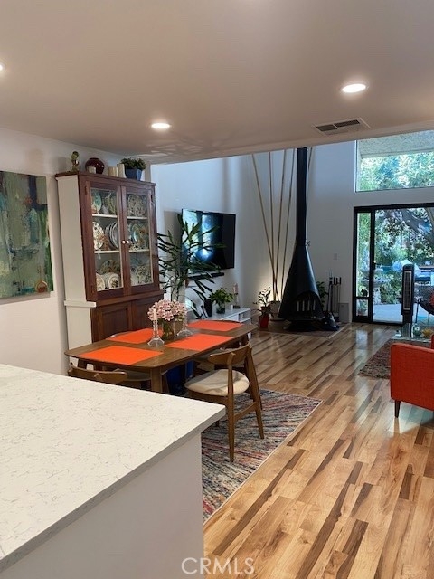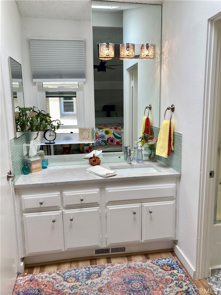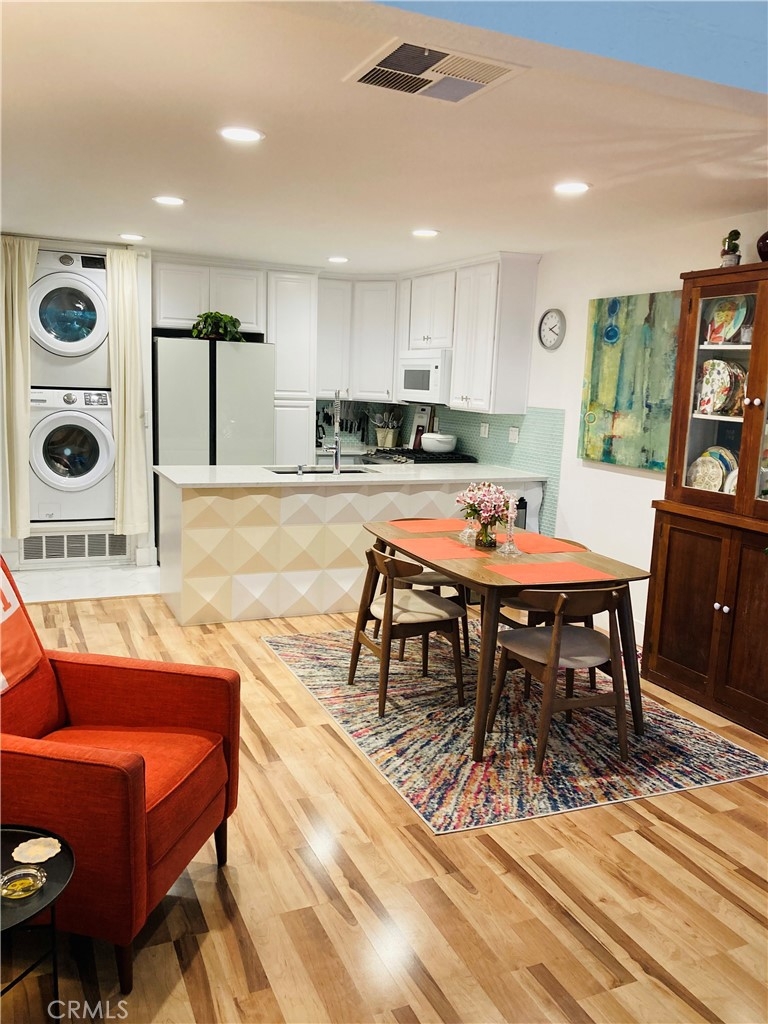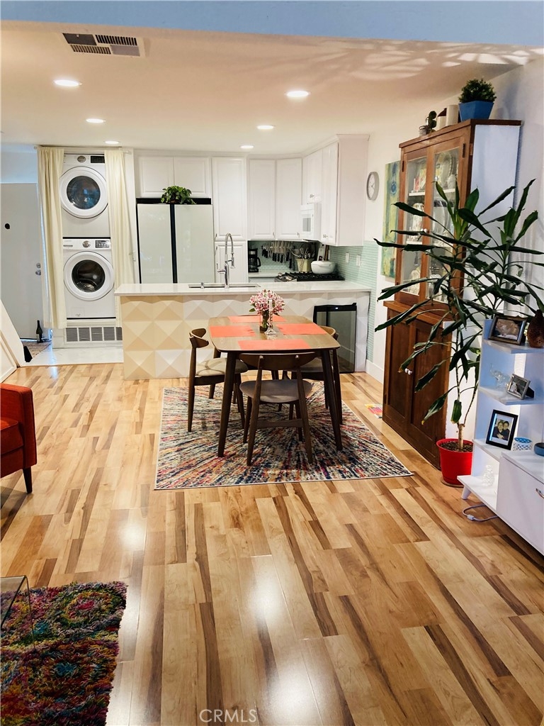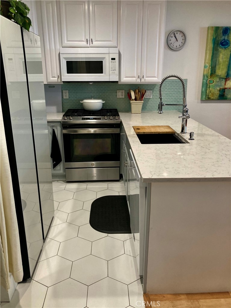 Welcome to your personal oasis...Gorgeous Orange Lakes townhome offers privacy and improvements galore.The kitchen has newer stove and dishwasher, new hexagon porcelain flooring, quartz countertops, new wine cooler, granite composite sink, retractable front door screen and recently painted two tone cabinets. The recessed lighting, new light color laminate flooring and the attention getter mid-century looking fireplace add to the uniqueness as well as warms you on a cold winter night. The entire home was newly painted throughout.The extra large slider leading to the serene patio brings the outside in. Step outside and you instantly have a feeling of relaxation and are greeted by the sounds of the fountain, soft lighting and the incredible tree sitting in the lake with lush flowers and foliage everywhere you look, even a few ducks pass by occasionally. Sit out in the evening with a drink or early morning coffee on the 8x8 foot Trex deck or invite friends over, great place for entertaining. Upstairs is the lovely loft bedroom with same flooring as downstairs, a ceiling fan and there are black out shades for the skylight as well as the window, you can rest easy any time of the day. The bathroom quartz vanity and herringbone marble floor give a luxurious feeling, the bath and shower were re-glazed and new wall tile and new shower door and recessed lights. The walk-in closet has been updated to have both upper and lower hanging space as well as shelving for storage. Orange Lakes has a ton of amenities,pool, spa,sauna, tennis/pickle ball court, firepit, picnic area. Bring your fussiest buyers, once they enter they will not be disappointed.