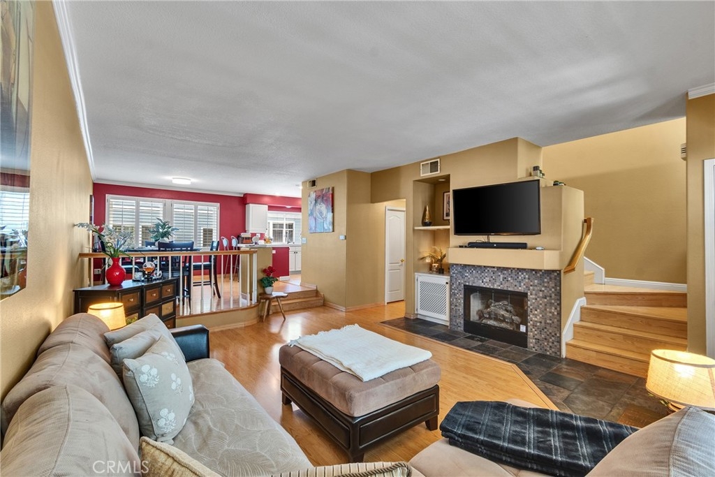 Tucked away in the prestigious Huntington gated community, this beautiful townhome offers the perfect blend of modern elegance, comfort, and convenience. From the moment you step inside, you're greeted by a spacious and inviting living room with a cozy fireplace—ideal for relaxing evenings or entertaining guests. The open-concept layout seamlessly connects to the elevated formal dining area, creating a perfect flow for hosting. The light-filled kitchen features a breakfast bar, sleek tile finishes, and stainless steel appliances, all framed by sunlit windows that brighten the entire space. Upstairs, you’ll find dual primary suites, each with walk-in closets and private en-suite bathrooms. The oversized primary offers spa-like amenities including dual vanities, a soaking tub, separate shower, and a private commode. The secondary suite includes an extended retreat, perfect for a home office or guest room. Additional highlights include a three-car garage, in-unit laundry, and access to resort-style amenities such as a sparkling community pool. Enjoy the security of gated living while being just minutes from top-rated schools, shopping, dining, and major freeways. This is Orange living at its finest—don't miss this rare opportunity to own in one of the area's most sought-after communities!