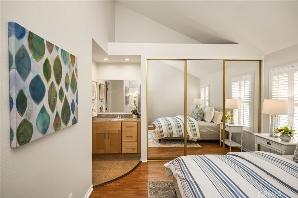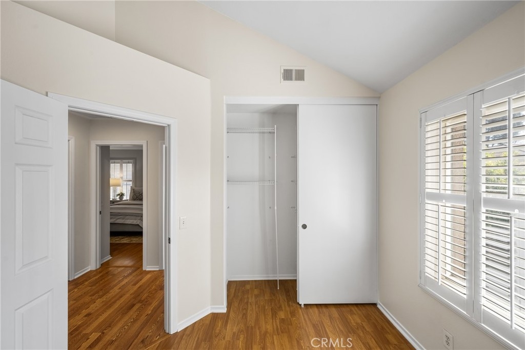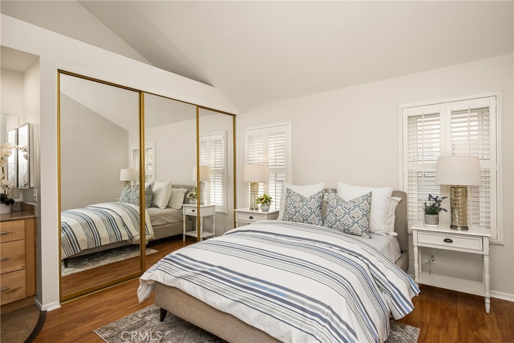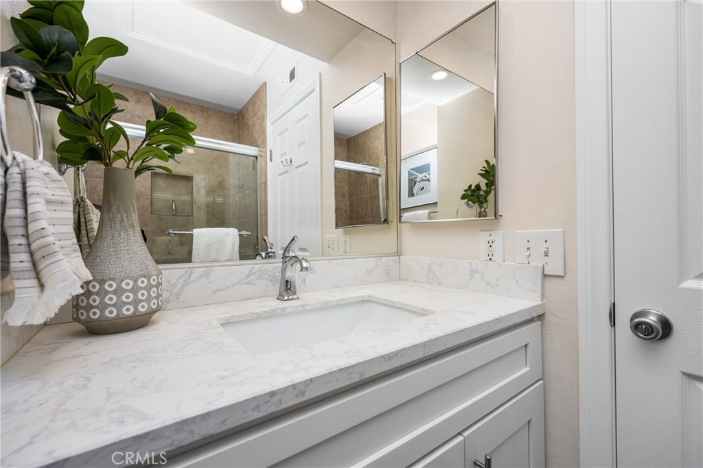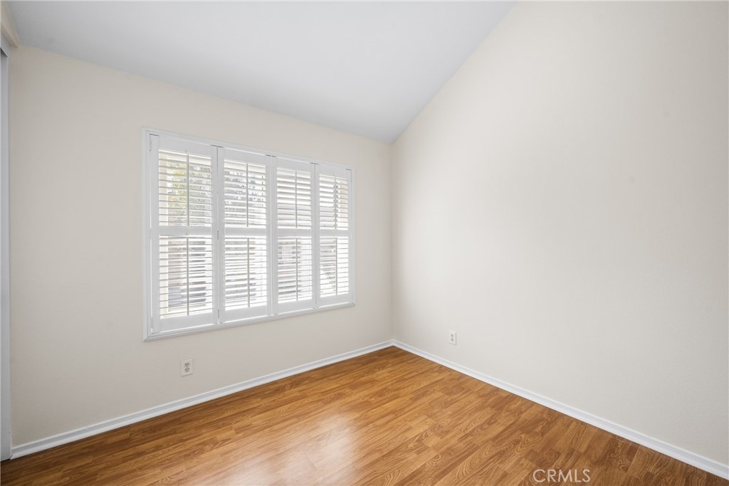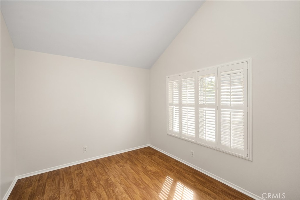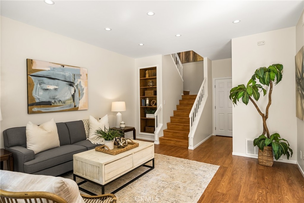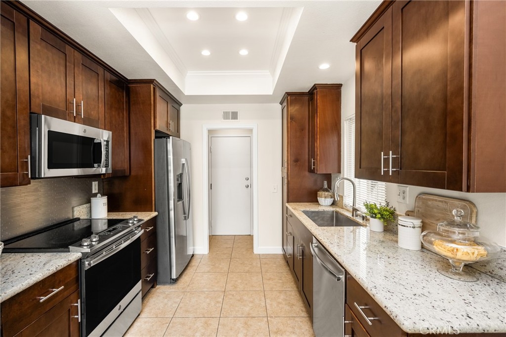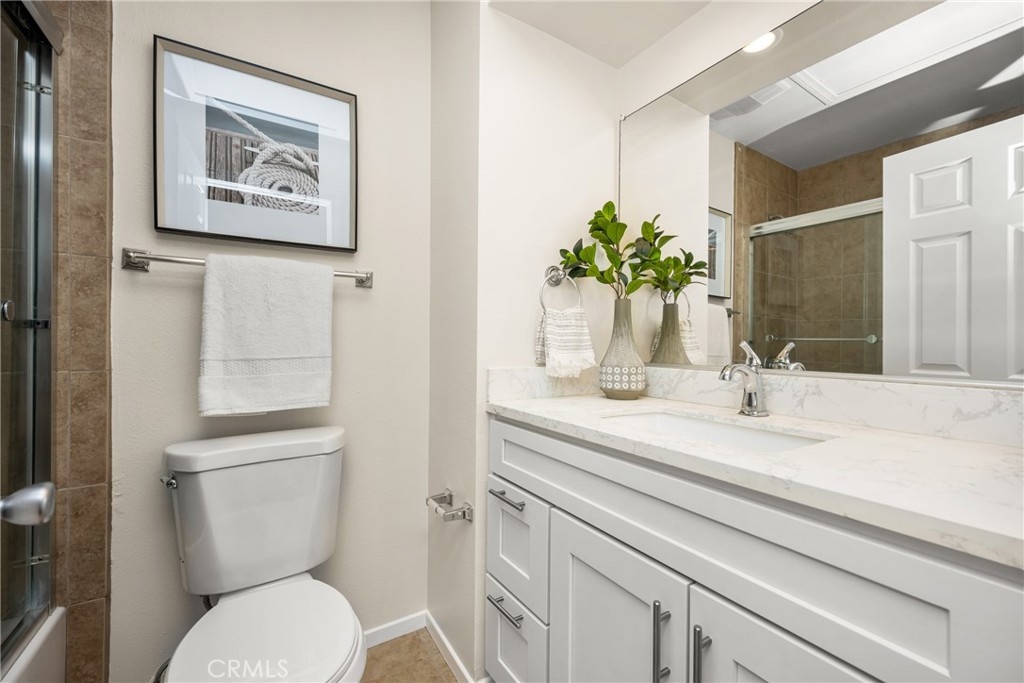 Nestled in the East Orange Foothills, this remodeled end-unit townhome offers a perfect blend of modern comfort and style. With one shared wall, this 3-bedroom, 2.5-bath home is move-in ready and designed for convenience. Step inside to find a welcoming living room featuring a built-in bookcase and display area. The home is filled with natural light thanks to newer dual-pane windows and elegant plantation shutters throughout. The beautiful wood-look laminate flooring runs throughout the main areas, adding a touch of elegance. The dining area overlooks the front patio through sliding doors, perfect for indoor-outdoor living. Enjoy your morning coffee or evening stargazing outside on the newly renovated wood deck. The kitchen is a chef's dream with rich wood cabinets, a designer back-splash and granite countertops. It also includes GE stainless steel appliances including side-by-side refrigerator with water & ice, dishwasher, electric range, microwave and a deep prep sink. A convenient inside laundry room offers full-sized washer & dryer hookups and additional storage cabinets. A main floor 1/2 bath features a granite-topped vanity with custom tiled back-splash. Upstairs, the primary suite boasts a remodeled full bath with a large tiled shower over tub, custom glass enclosure, new wood vanity and elegant finishes. The primary bedroom with high ceilings offers an extra large closet with 3 mirrored doors and custom organizers. The two upstairs guest rooms also feature high ceilings and are freshly painted and ready to move in. The remodeled upstairs guest bath includes a shower over the tub plus a shaker style vanity with a beautiful countertop and new fixtures. Additional features include fresh interior paint, newer HVAC system with central heating and air conditioning, recessed lighting, new raised panel doors and so much more! This amazing property offers direct access to a 2-car garage with overhead storage, a wall of custom cabinets and newer roll up door. Enjoy the great association amenities including the large community pool and recreation area plus a smaller pool within walking distance. Located close to Santiago Canyon College, Peters Canyon, Irvine Park and Lake, the Pacific Ranch Market & Shopping Center, plus hiking and horse trails. Don't miss this opportunity to own a stunning home in a desirable location!
