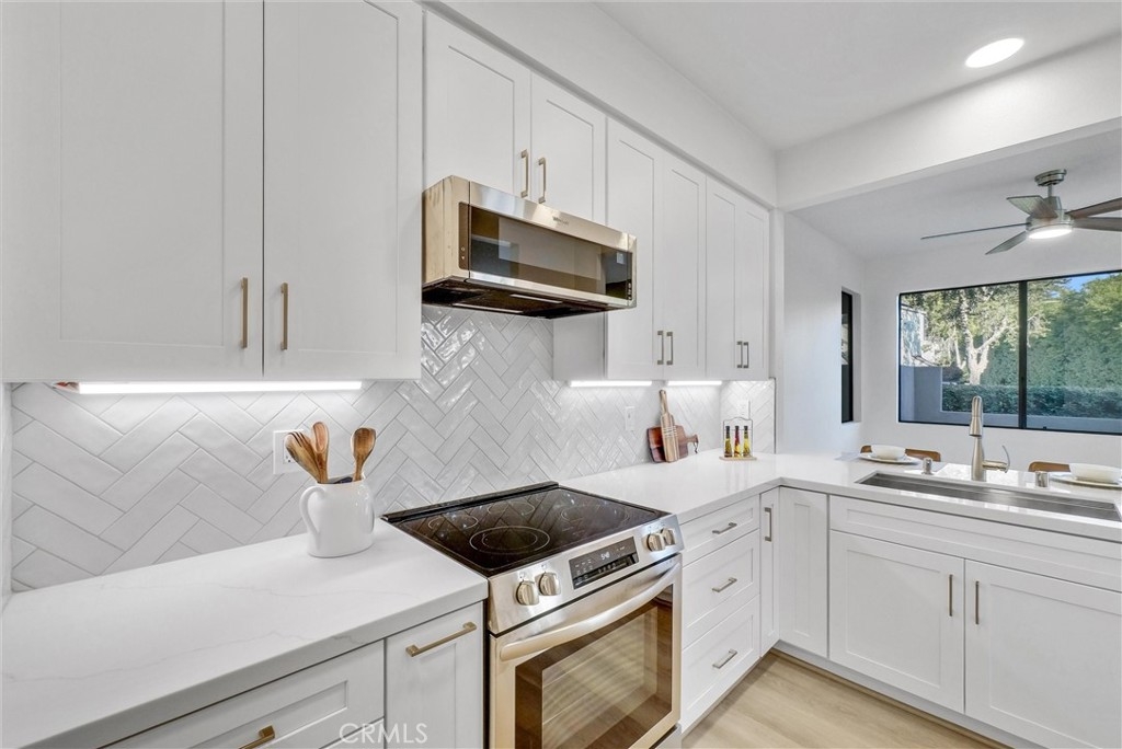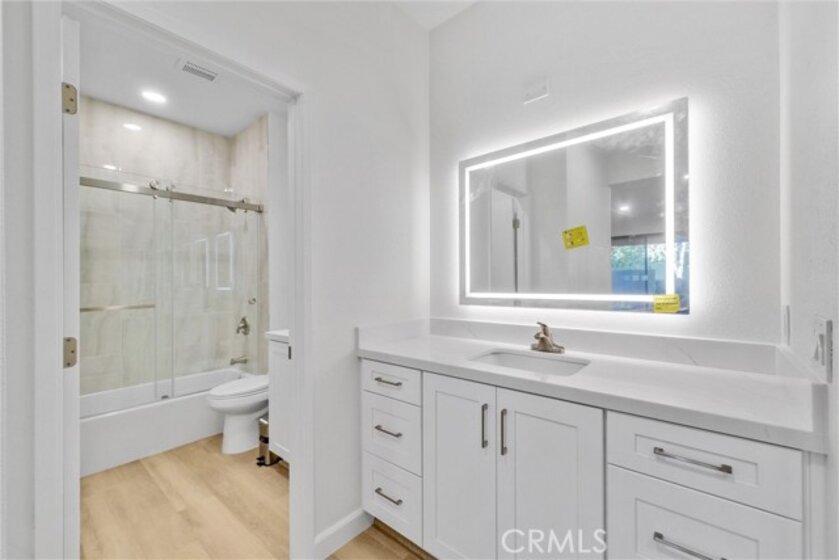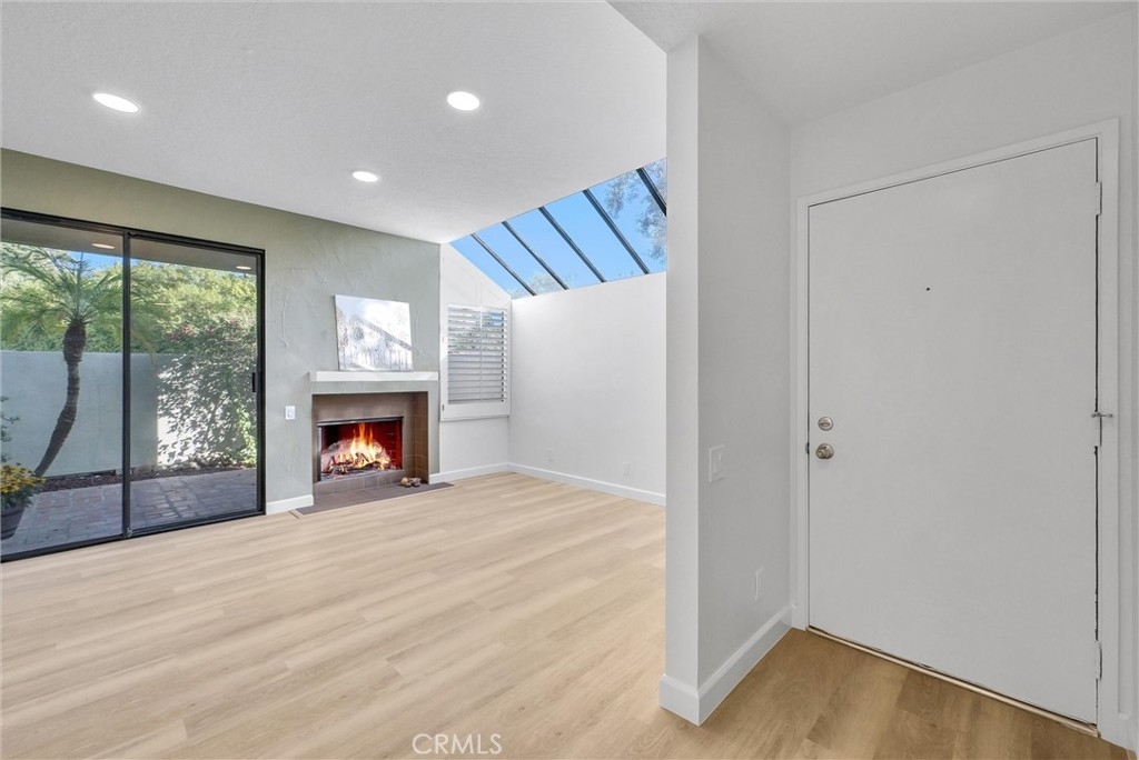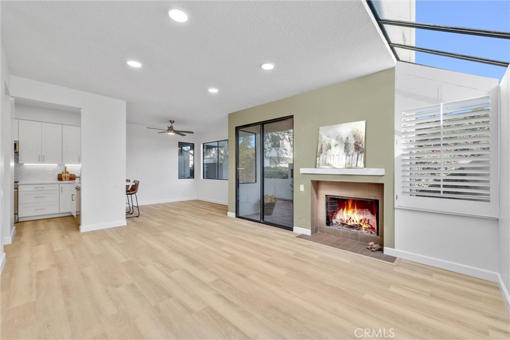 Wow! Value Range Price **** $648,000-$678,000****. Fall in love with this newly remodeled single story condo in the Hills of Orange. Nestled in prime end unit location with very private/large enclosed patio yard. Must see the incredible amount of new improvements. Totally new kitchen with soft touch cabinetry, quartz tile countertops and tile backsplash, stainless steel appliances including sleek microwave. Gorgeous new bathroom with soak tub/shower, frameless glass door and 2 new vanities/ sinks with modern LED mirrors. No neighbors to rear or south side-lush greenbelt right behind patio- perfect for dogs . Cozy gas/wood burning fireplace and direct access garage. Full size indoor laundry room with storage cabinets. Other great features include all new plank flooring, Led lighting, dining room ceiling fan. Walking path across street along with hiking trails in Santiago Parks Regional Park. Close to Peters Canyon and Irvine Regional Park. Meet friends for a drink and enjoy amazing views at popular restaurants Orange Hills and Orange County Mining Co. just minutes away. Association Dues Include Water/Trash & Best of All-No Mello-Roos Taxes