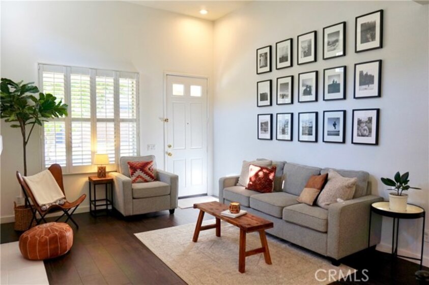 This freestanding, detached, single family home has no one attached on either side & has a preferred corner lot location w/in The Villages. This community has it's own pool and is only minutes from Peter’s Canyon nature trails, Irvine Park, & 2 miles to The Ranch Market Town Center in Orange Park Acres! Greeted by a front porch, a friendly fireplace in the family room, custom white shutters throughout and a built-in entertainment area, this home speaks many languages of welcome w/it's light and bright interior. Some of the upgrades you’ll notice are a completely remodeled downstairs w/stunning dark wood laminate flooring, re-modeled powder room, brand new commercial-grade custom kitchen cabinetry, white quartz counters, subway tile backsplash and feature wall, center cook island & coffee bar. Upgrades to the home include new stainless-steel appliances that stay w/the property, along w/new recessed lighting and a complete re-pipe of the entire home's plumbing system. Entertain outdoors and enjoy relaxing on your new Trex Deck patio under large Eucalyptus trees and bistro lights. Upstairs, convenient laundry area has washer & gas dryer included! The master has a dual vanity & large walk-in closet. Custom built-in closets are in both guest rooms for easy organizing. One of the bedrooms has a darling built in loft bed w/custom bookshelves as well! Surrounded by great schools, w/the highly sought-after Linda Vista Elementary just down the street! Located between 55/91/5/241 FWYS.