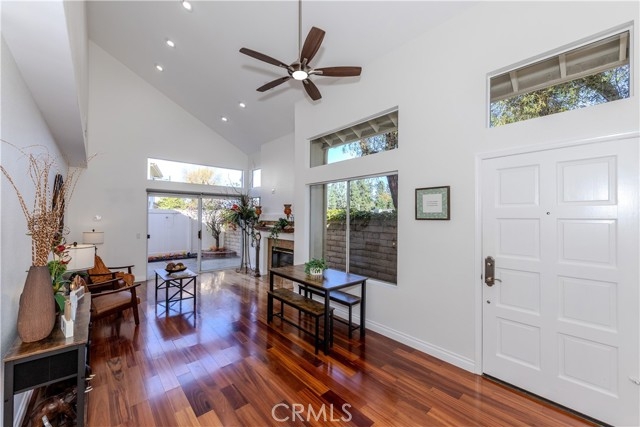 Welcome to 5931 E Rocking Horse Way #31—where peaceful mornings, elevated living, and timeless design come together in one of Orange’s most coveted gated and 24 hours guarded communities. Step inside this beautifully maintained end-unit townhome and feel the warmth of natural light dancing across rich wood floors. The open layout, dramatic ceilings, and cozy fireplace create a space that’s both inviting and refined. Whether you're hosting dinner in the dining room or unwinding in the spacious living area, every corner feels like home. The chef’s kitchen is a dream come true: gleaming granite countertops, stainless steel appliances, and abundant cabinetry make it as functional as it is stylish. With three bedrooms and two and 3/4 baths—including a downstairs suite with 3/4 bathroom perfect for guests or a home office—this home offers flexibility without compromise. Upstairs, dual primary retreats provide privacy and comfort, each with its own en-suite bath. The main suite features dual sinks, and a custom-organized closet that makes mornings effortless. Slide open the glass doors and step onto your private patio, where hillside views offer a tranquil backdrop for coffee, conversation, or quiet reflection. The attached two-car garage with direct access adds convenience, while the community’s pool, and spa just steps away elevate everyday living. Minutes from Peters Canyon, Irvine Park, and Old Town Orange, with top-rated schools and scenic trails nearby—this home is perfectly positioned for both adventure and ease.