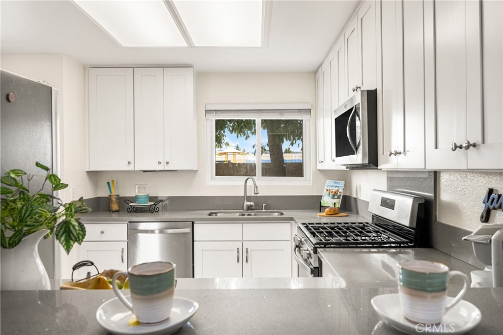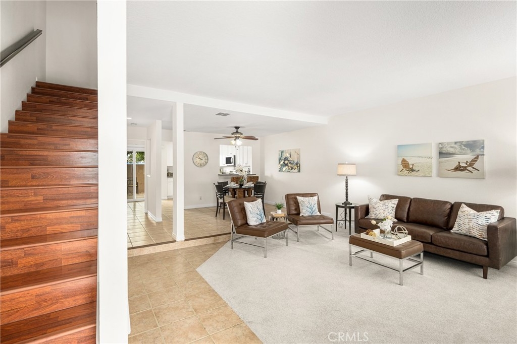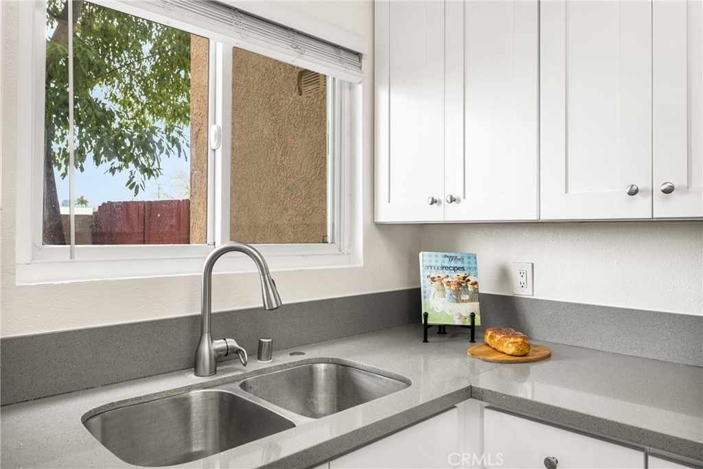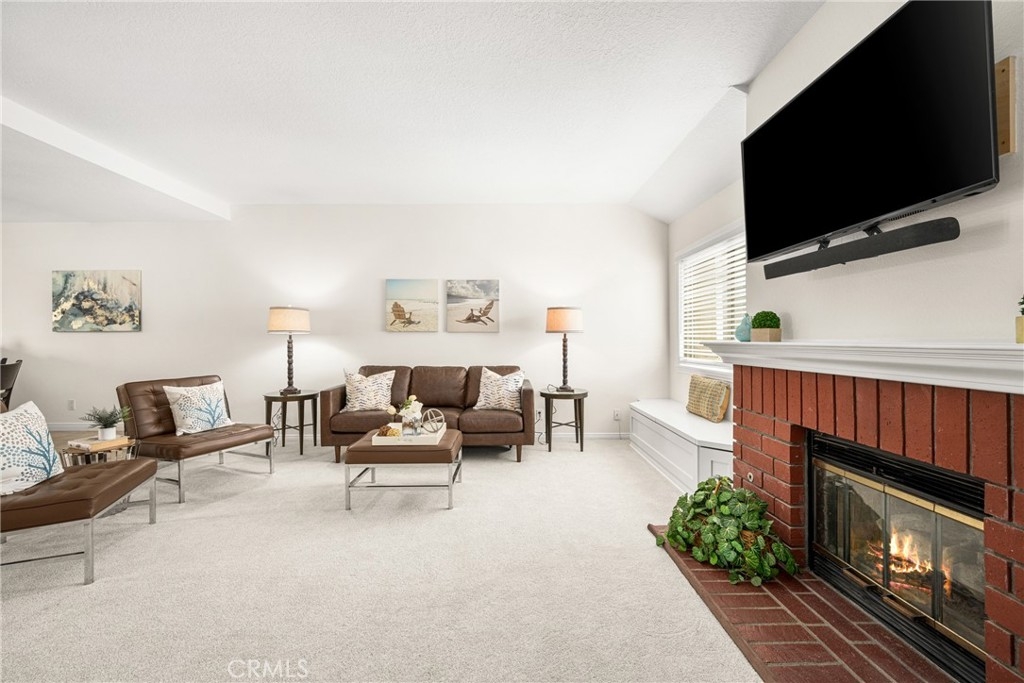 Spacious 3 bedroom, 2.5 bath townhome in North Orange. Come see us and you will not be disappointed. Open floor plan with large living room and brick fireplace with mantle, and window seat with storage that opens to large dining room with breakfast bar and kitchen beyond. Kitchen has been remodeled and features stainless steel appliances, that include microwave, dishwasher, fridge, range & oven plus deep stainless steel sink. Soft close, custom Shaker cabinets, quartz counters and breakfast bar. Kitchen door slider that you leads you out to shaded back patio/yard. Upstairs, there are 3 spacious bedrooms. Lovely master suite with higher ceilings, good sized walk-in closet, bedroom has slider leading out to a quaint balcony that overlooks grassy green field and a remodeled bath with double sinks, remodeled shower/tub combo, quartz counters and tile floors. The two additional high ceiling bedrooms share a full bath. One bedroom has a walk-in closet and the other has two closets with shelves and wardrobe. The home has recently been freshly painted and new carpeting installed in the living room. This townhouse unit has two car detached garage with shelves and complex has additional guest parking. This townhome has easy access to 57, 55 and 91 freeway. Excellent public schools and easy walk to Fletcher Elementary. Public schools Cerro Villa Middle School and Villa Park HS are close as well as Orange Lutheran HS. Fletcher Elementary has a unique, optional Mandarin Dual Immersion CTE Pathway for International Business. It starts in kindergarten and then moves to Cerro Villa and Villa Park HS.