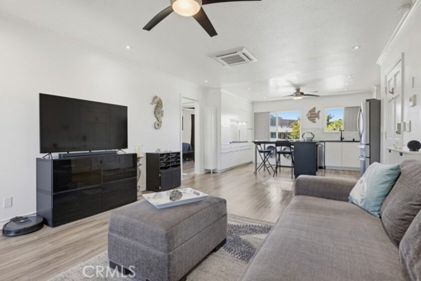 Welcome to this beautifully updated 2-bedroom, 1-bathroom home that blends modern comfort with everyday convenience. Thoughtfully renovated throughout, this residence features an open floor plan that creates a bright and inviting living space—perfect for relaxing or entertaining. Enjoy year-round comfort with an energy-efficient mini-split system to keep you cool in the summer and warm in the winter. The stunning bathroom has been tastefully upgraded with stylish finishes, while newer windows bring in abundant natural light. Additional highlights include the convenience of inside laundry, a private balcony with lovely views, and secure garage parking. Ideally located close to parks, shopping, sporting events, and Chapman University, this home offers both comfort and accessibility. Available fully furnished for a seamless move-in experience—just bring your essentials and settle right in.