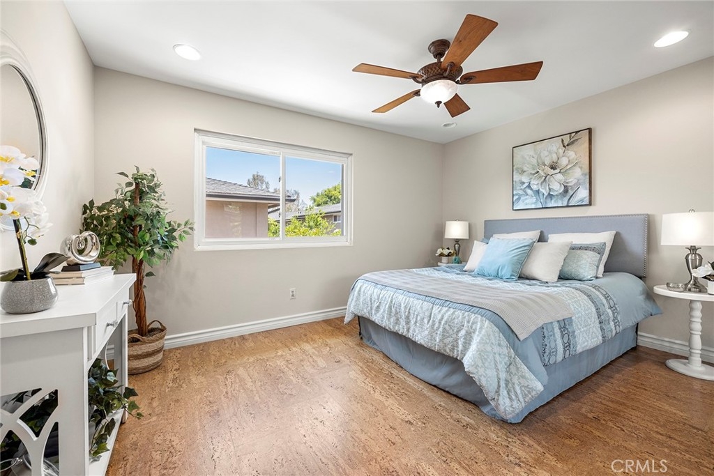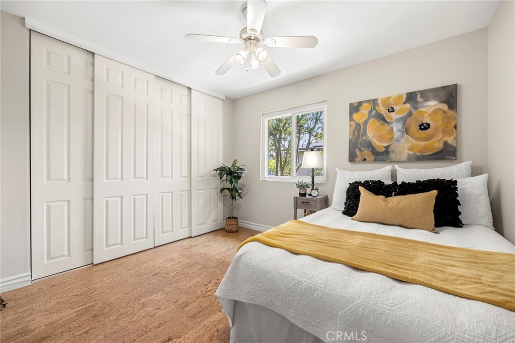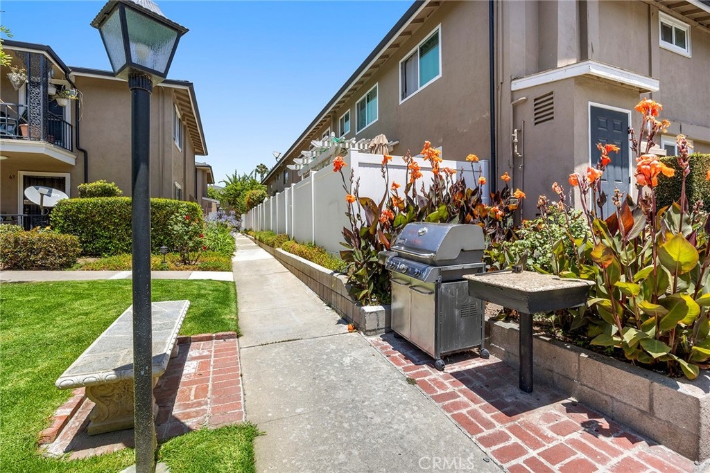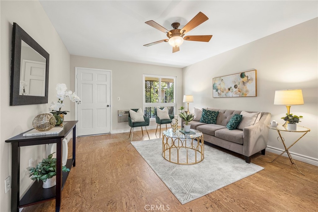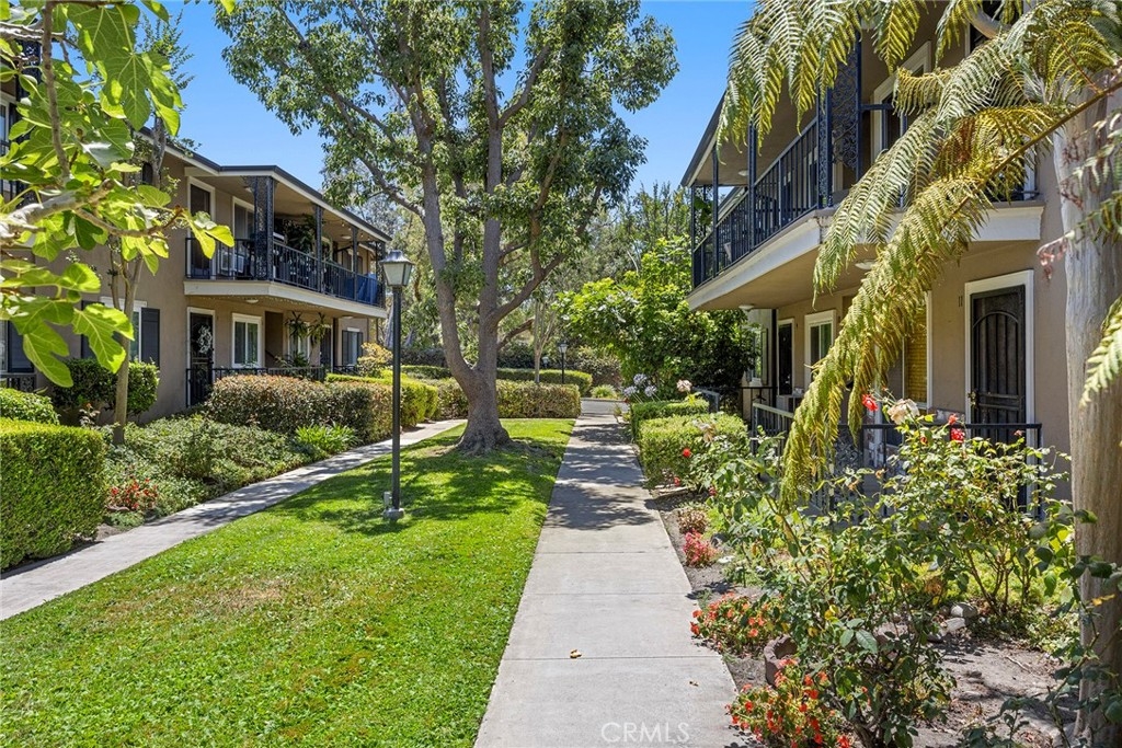 Become a resident of Park Orleans Community located in central Orange, walking distance to Old Towne and just across the road from Hart Park. A wonderful upstairs 2-bedroom unit with a balcony off the living room to relax on and greet those who walk by. Lots of value in what is offered in this HOA: water and trash, pool and spa and a garage that is located nearby. Newer double paned windows and cork flooring are nice upgrades. This unit has been freshly painted and ready to move in. The location is freeway close. Come and meet your new neighbors and take a walk around this development, it will feel like home!