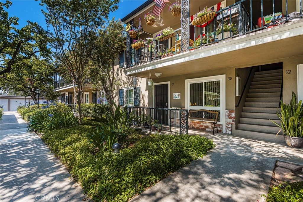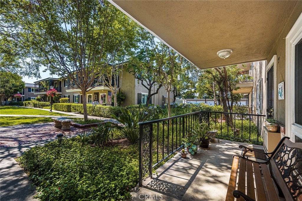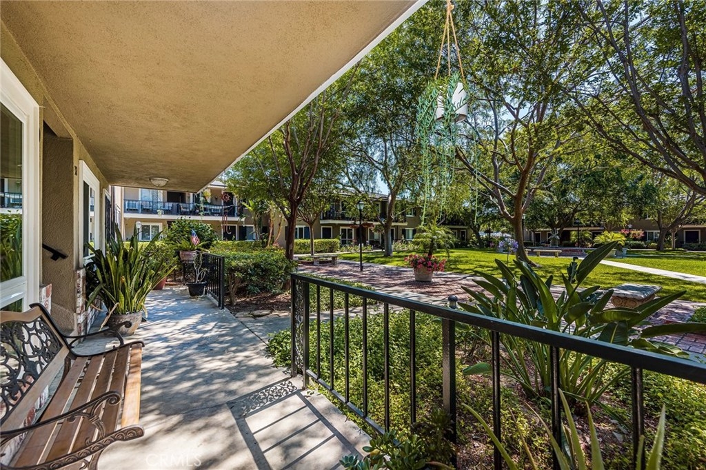 Welcome to your new home in desirable Park Orleans! Beautiful lower unit in quiet interior location with lovely views, move-in ready, front porch, private back patio, spacious open kitchen has granite counters, island with seating and built-in wine rack, lots of storage, built-in desk area, gas cooktop, refrigerator, dining area, new flooring thruout, bath has tub/shower, master has mirrored wardrobe doors, window blinds, new interior doors, one-car detached garage, located across from Hart Park and close to Old Towne Plaza!