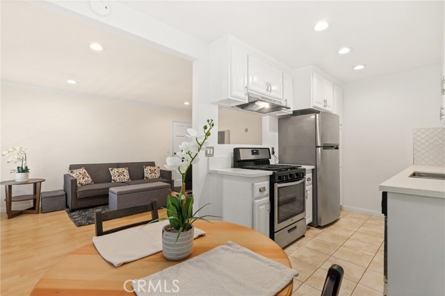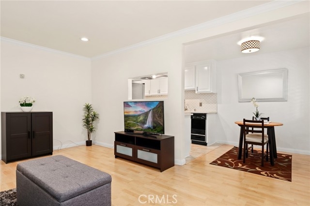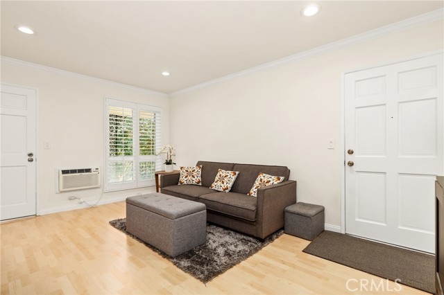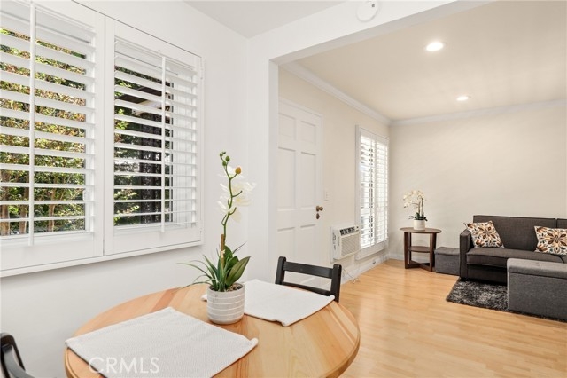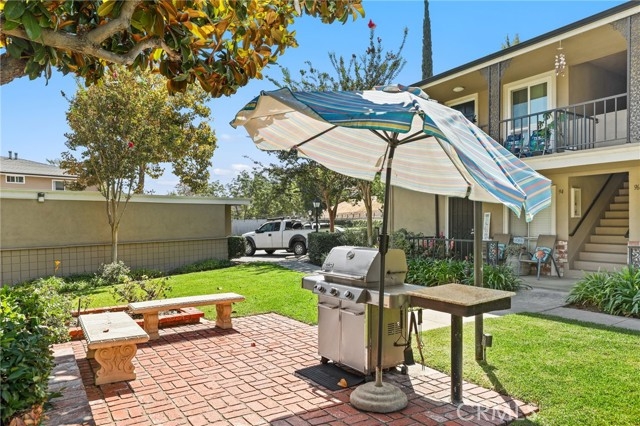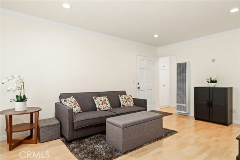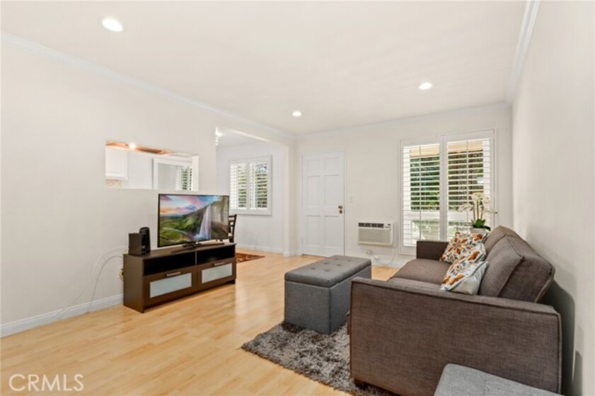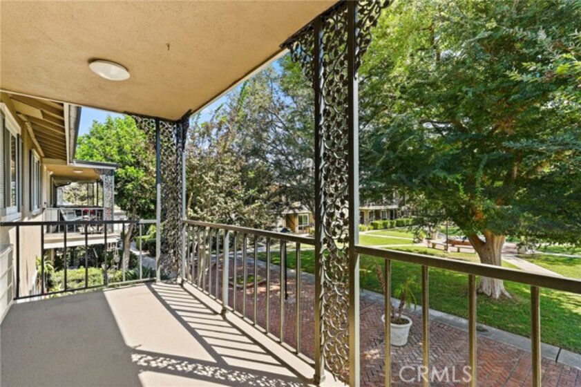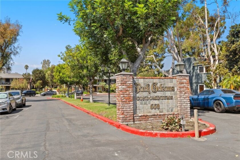 Welcome to this charming upper-level 1 bedroom, 1 bathroom condo offering 593 sq. ft. of comfortable living space in the highly desirable Park Orleans community. This inviting home features a beautifully remodeled kitchen with modern cabinetry, refrigerator, and stove, as well as a remodeled bathroom complete with a stylish vanity. The open floor plan is enhanced by recessed lighting, laminate flooring throughout, dual pane windows, and stylish shutters, creating a bright and welcoming ambiance. This home is being sold FULLY FURNISHED. Stay comfortable year-round with a gas wall heater and wall A/C unit. Step out onto your private balcony overlooking the beautifully landscaped community common area, complete with mature trees and a soothing fountain. Tucked away in a quiet location, this home offers the perfect balance of comfort and tranquility. Parking is made easy with a 1-car garage featuring a newer garage door opener. An additional permitted space is available for a second driver. Community amenities include a sparkling pool, BBQ area, and on-site laundry facility. Low HOA dues include trash and water, adding extra value. Ideally situated across from beautiful Hart Park and just minutes from Chapman University, the Orange Circle, St. Joseph Hospital, and CHOC, you’ll love the blend of peace, convenience, and easy access to shopping, dining, healthcare, and entertainment. Don’t miss this opportunity to own a move-in ready home in the heart of Orange!