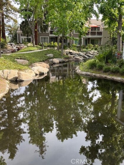 WELCOME HOME to the wonderful community of "Morningside on the Lake". Lush landscaping, bubbling streams and mature trees abound in this quiet, park-like setting. This is a wonderful, upper level end unit ( no one above or below you ); one bedroom, one bath condo spanning 849 sq ft, with your own personal patio to enjoy morning coffee or afternoon drinks. Great living room area, dining area, large oversized Master bedroom. Large walk-in closet, with plenty of storage space. Off the kitchen area is an open area that could be a great space for a home office area. Brand NEW Ceiling fans in " office " area, dining and bedroom. Brand new hanging lights in both the kitchen and dining area. New wall light fixture in kitchen. Freshly painted interior walls. One car covered parking along with your own storage unit just below your condo. Inside laundry with full washer / dryer. BRAND NEW AC unit. This complex is in its own hidden oasis just minutes from Old Towne Orange ( Orange circle ), with great dining and shopping, Hilbert Museum, Chapman college. Santiago creek trail and Hart park nearby. Close access to 55, 22 and 5 freeways.