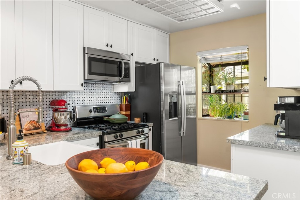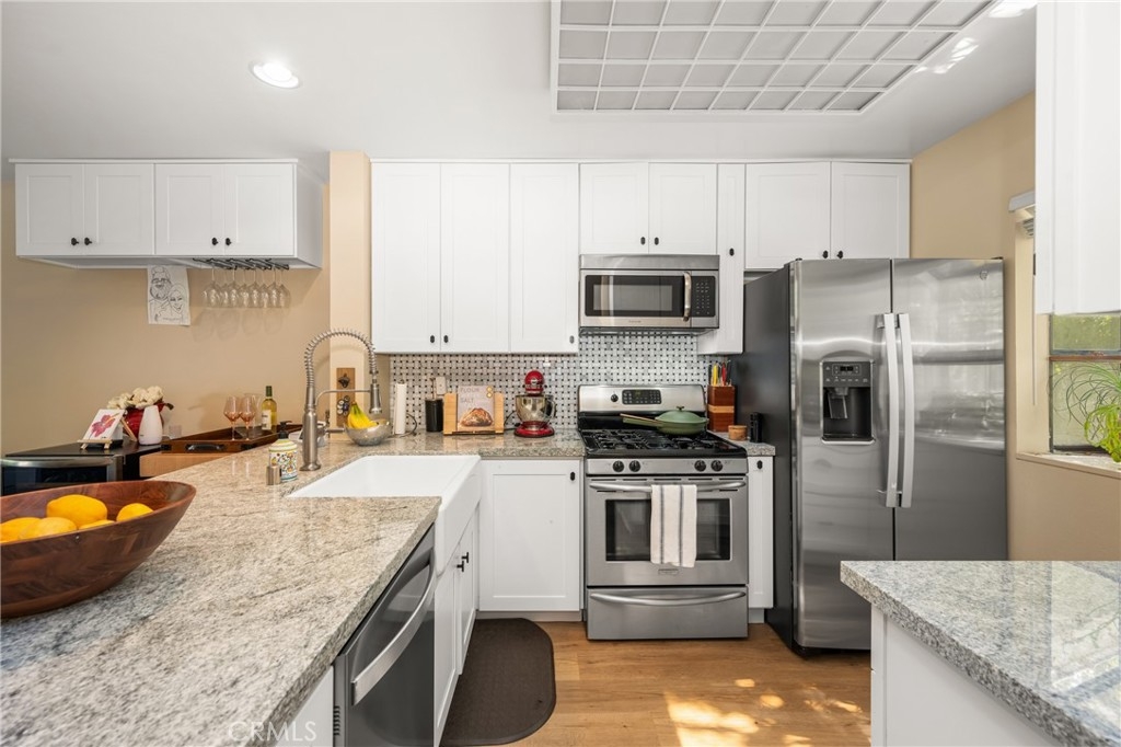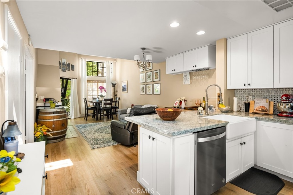 Live your best life in Morningside on the Lake!! **Upstairs LOFT can be used as a bedroom or home office** Plus a Main Level Primary Bedroom and Bathroom** One Car Garage & Covered Carport Space**LOW HOA Dues**Remodeled & Stylish Kitchen**Indoor Laundry Closet**Living Room w/Vaulted Ceilings & Open Floor Plan** Don't miss out on this beautiful condo in the highly desirable community of Morningside on the Lake. This hidden gem is tucked away on the outskirts of Old Towne Orange and a short distance to the restaurants and shops. One of the most popular floor plans in Morningside, enter on the second level and step into your new home with a primary bedroom and bathroom on the first level and an upstairs loft which is perfect for a home office. A stylishly remodeled kitchen is open to the spacious living room which has a cozy fireplace. The cheery kitchen includes white cabinets, fresh paint, a breakfast bar, granite counters, and stainless steel appliances. A one car garage and covered carport space ensures you have convenient parking. Other features include a brand new furnace, newer luxury wood vinyl floors, inside laundry closet, newer tankless water heater and an outdoor storage closet. Enjoy this secluded community surrounded by a tranquil lake, ponds, streams, waterfalls, and bridges. Overlooking the running streams, there is a balcony that is perfect for morning coffee or grilling on the BBQ. Cool off in the sparkling association pool and beat the heat! Nearby is Santiago Creek trail with walking and bike paths, Chapman University, the Orange Plaza, dining and annual events hosted by the City and Community of Orange like the International Street Fair, Christmas Tree lighting Ceremony, and Treats in the Streets in the fall. This one won't last so come on over and fall in love!