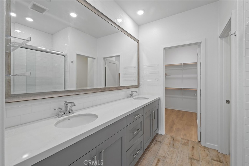 Experience modern luxury at 712 South Grable Circle, a professionally upgraded townhome in ParkerOne, a sought-after TRI Pointe Homes community in Orange. Built in 2021, this stunning residence showcases designer finishes throughout, including European Alabascato Dashwood hardwood flooring, Hunter Douglas Provenance woven shades, and a gourmet kitchen with quartz countertops, custom color upgraded shaker style cabinetry, a full herringbone subway tile backsplash, and a dramatic quartz waterfall-edge island. The bathrooms are beautifully upgraded with quartz countertops, framed mirrors, 6-inch backsplashes, and 3/8-inch glass shower enclosures. For a complete list of builders' upgrades please contact the listing agent. Enter through a charming covered porch and foyer to find a main-level office and powder room perfect for a home office or conducting business from home. The second level features an open-concept living area with a chef-inspired kitchen, walk-in pantry, guest powder room, and access to a spacious outdoor deck ideal for relaxing or entertaining. On the third level, the primary suite offers a walk-in closet, dual vanities, and a luxurious stand-up shower adorned with builder-quality upgrades. The secondary bedroom suite includes a soaking tub and its own private bath. A spacious laundry room is conveniently located on this level as well. Additional highlights include paid solar, sleek modern chandeliers, recessed LED lighting throughout, tankless water heater and dedicated EV charger circuit in the garage. The home enjoys a private interior location just steps from the community pool and cabanas. Beyond your doorstep, enjoy close proximity to CHOC and St. Joseph Hospital, Chapman University, and Old Towne Orange offering an unmatched blend of luxury, comfort, and convenience. Minutes away from four major freeways the 22, 57, 5, and 55. Schedule your private tour today!