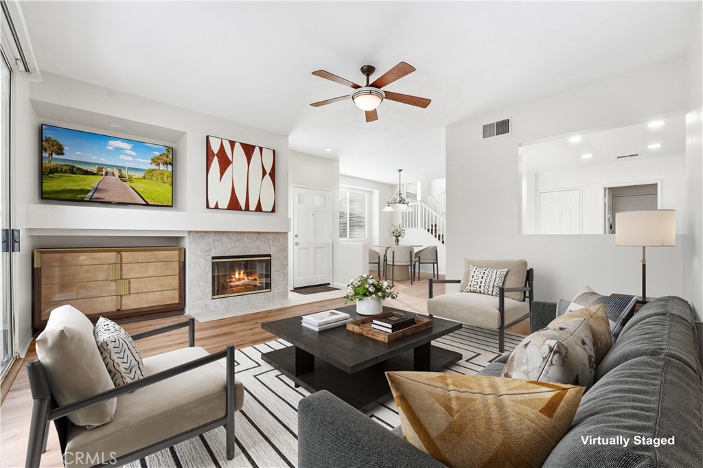 Discover the perfect blend of privacy, comfort, and modern design at 756 N Siavohn Dr in Orange. This lovingly maintained 3/bedroom, 2.5/bath Stratford collection detached end unit townhome is nestled within The Huntington gated community. Step inside and enjoy this spacious floor-plan that offers 1,454 square feet that flows beautifully. The living room has a soaring high ceiling and the windows flood the space with natural light. A cozy fireplace adds warmth, making it ideal for both relaxed evenings and entertaining. The kitchen features an inviting breakfast bar which opens to the charming dining area. Upstairs, enjoy the primary suite, complete with a spa-like bath featuring dual vanities, soaking tub, a separate glass enclosed shower, and walk-in closet. Two additional bedrooms and a secondary full bath provide plenty of room for family, guests, or a home office. The backyard with covered patio is a great setting to enjoy your morning coffee or an afternoon BBQ. The convenience of a two car attached garage with direct interior access can not be understated. Enjoy all the amenities The Stratford section of The Huntington has to offer. Take a dip in one of two pools, host a get together at the clubhouse, or just outside the community is Grijalva Park, a 26.5 acre space featuring sports facilities, playgrounds, and scenic trails. Centrally located, the community offers two gated entries, all maintained by the HOA, and easy access to shopping, dining, and freeways. Live the lifestyle you deserve in this highly sought after community. Welcome home!