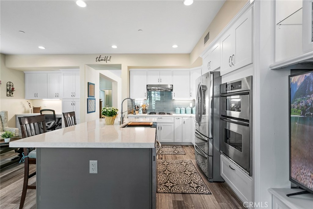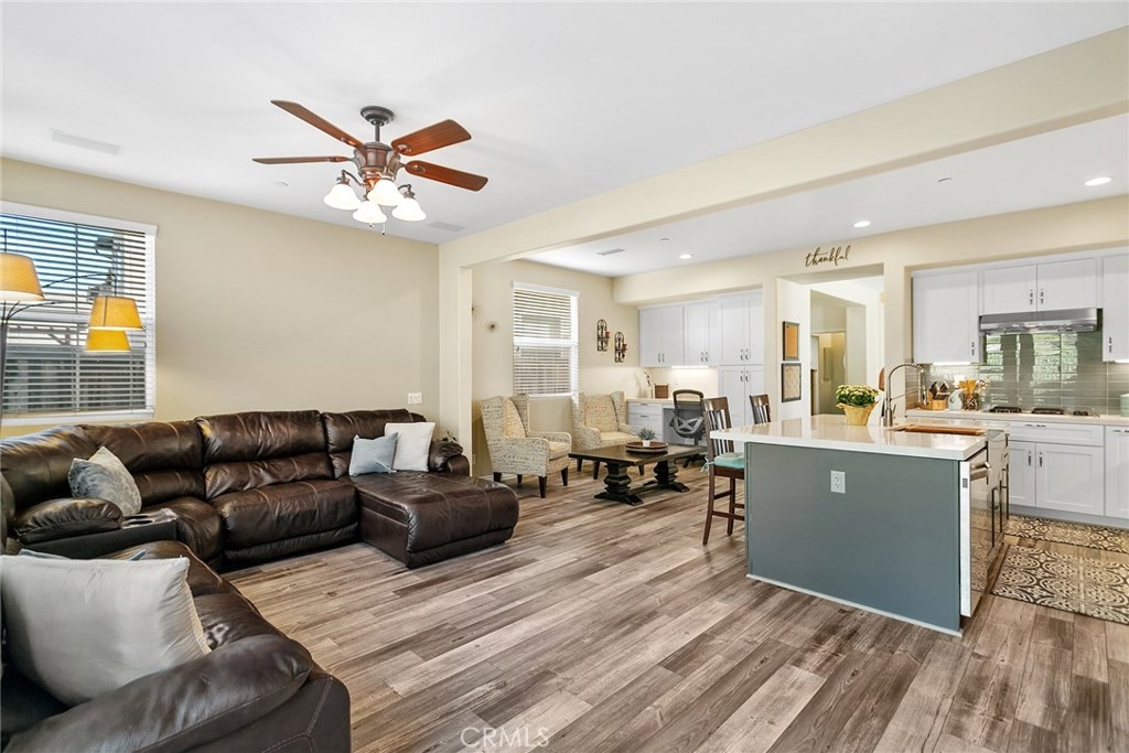 Perched high atop the hills of Orange awaits the opportunity to call 8031 Loftwood Lane home. Rich luxury vinyl plank flooring welcomes you into the home where you will find a functional and inviting floor-plan. With over $30,000 recently spent on a full kitchen renovation, custom built-in pantry and desk area and new vinyl flooring, you will feel like you’re in the model home! This property is ideally situated in a corner location, backing to the beautiful hillside. Upstairs you will find a large loft area that can be used an additional family room or workspace. The master suite provides a large walk-in closet with built-in cabinetry, a walk-in shower and soaking tub in addition to dual sinks and a vanity area. You’ll enjoy serene views of the hillside looking out from your master bedroom. Designed with family in mind, there are two additional bedrooms, a full bathroom and laundry room on the second level of the home. The garage has an ample amount of built-in and overhead storage in addition to epoxy coated floors. Other upgrades include an owned water softener, nest thermostat, newer water heater, insulated garage door, and the sellers have all the luxury vinyl plank flooring to be installed on the stairs and second level! The peaceful enclave of Serrano Heights offers a beautiful community pool and spa area, top rated schools, parks and hiking trails within walking distance and much more.