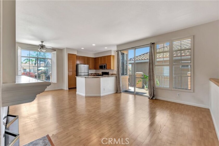 Nestled in the Monte Vista Community of Orange, this upper-level residence presents a spacious open floor plan comprising two bedrooms, two full bathrooms, plantation shutters, an attached garage, and an abundance of natural light. The generous family room is highlighted by a cozy fireplace and balcony access, while the kitchen showcases granite countertops, stainless steel appliances, and seamless connectivity to the dining and living areas. The private primary suite features vaulted ceilings, dual closets, a private balcony, and an en-suite primary bath. Enjoy the convenience of a direct access one-car garage and in-unit washer/dryer. Community amenities include a pool and spa. Situated in the Santiago Hills Community, this residence offers close proximity to Chapman Hills Elementary, various dining options, coffee shops, markets, Irvine Regional Park, and Peters Canyon Regional Park. Residents can explore walking, hiking, biking, and horse trails just steps away.