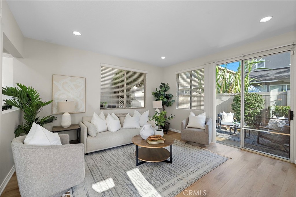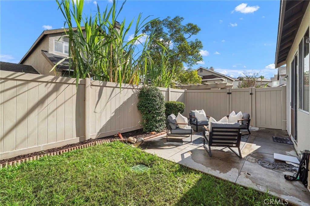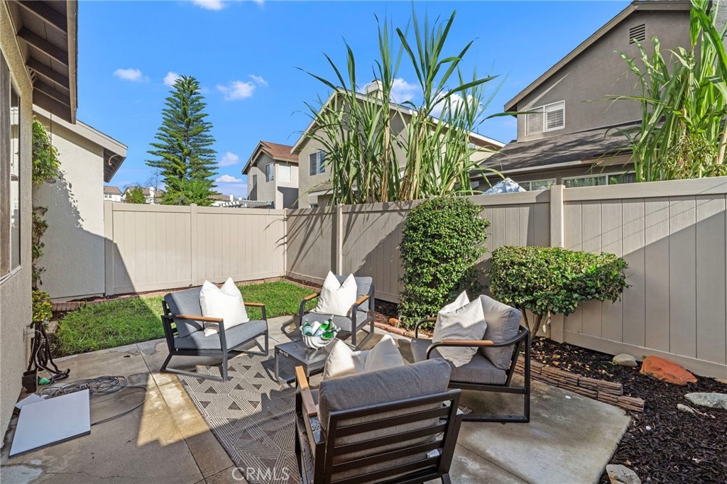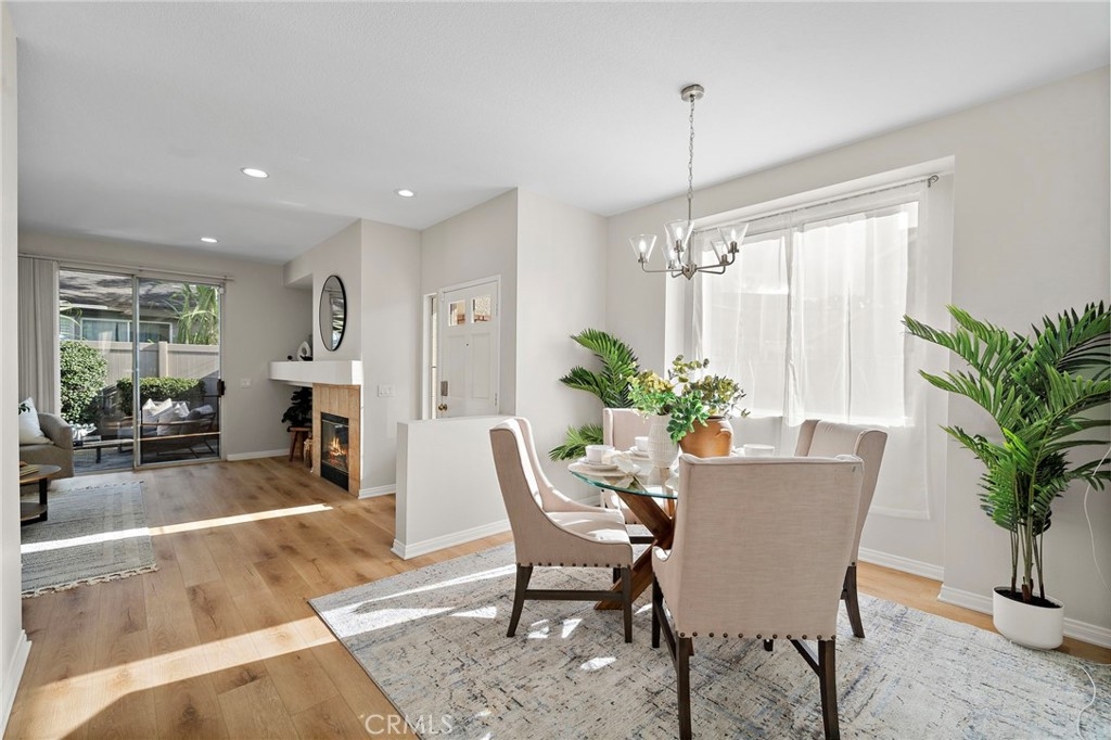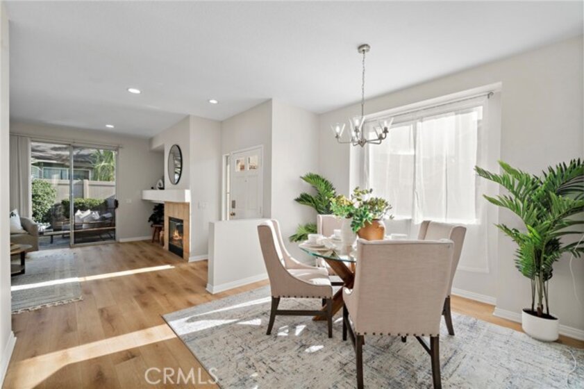 Welcome to 834 Kintyre, a beautifully updated end-unit townhouse-style condo in the gated Stratford of Huntington community. This semi-detached home shares only one partially attached wall and features a wraparound backyard, offering added privacy and outdoor living space. Recently upgraded with new carpet, luxury vinyl plank flooring, fresh paint, upgraded LED lighting, and refreshed bathrooms, this move-in ready home is light, bright, and inviting. The open dining area is filled with natural light and flows into a clean, modern kitchen with warm tones. The cozy living room with gas fireplace creates a welcoming space for relaxing or entertaining. Upstairs, the spacious primary suite features vaulted ceilings, a walk-in closet, and a primary bathroom with separate soaking tub and walk-in shower. Two additional bedrooms and two bathrooms provide comfortable living and flexibility for a growing family, home office, or guests who will love to visit. The finished two-car garage has been recently upgraded with epoxy flooring, fresh paint, and hexagon LED lighting, ideal for car enthusiasts or a workshop. Resort-style community amenities include two swimming pools, spa, clubhouse, and gated access, with sidewalks throughout for walking. Located near well-rated schools, shopping, dining, bike and walking trails, and easy freeway access, this home offers convenience, comfort, and lifestyle in the heart of Orange. Enjoy nearby attractions—or simply relax in a beautiful place to call home.