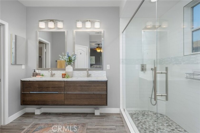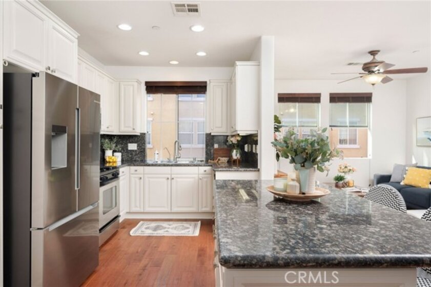 Tucked within the gated Tremont enclave of Serrano Heights, this beautiful townhouse blends modern comfort with everyday elegance. From the moment you step inside, you’re greeted by an airy formal living room with dramatic vaulted ceilings, a warm gas fireplace, engineered hardwood flooring, and sun-drenched windows that instantly make the space feel inviting. Continue into the heart of the home — a thoughtfully designed kitchen with granite countertops, stainless steel appliances, and a central island perfect for morning coffee or gathering with friends. The open layout flows effortlessly into a dining area ideal for dinner parties or family meals, creating the perfect balance between formality and ease. Upstairs, discover three spacious bedrooms and two and a half baths, including a serene primary suite complete with a spa-inspired ensuite bathroom, floating dual vanity with quartz countertops, a walk-in shower, and an expansive closet designed for organization and style. The laundry room is conveniently located on the same level, featuring built-in cabinetry for added everyday function. Two other bedrooms are located on the same floor. With direct-access two-car garage with extra storage, and thoughtful upgrades throughout, this home checks every box. The Tremont community offers manicured greenbelts, lush landscaping, and proximity to scenic Santiago Oaks and Fred Barrera Regional Parks, where miles of trails and natural beauty are just steps away. Residents here enjoy the comfort of a close-knit, well-maintained neighborhood—just a short walk to one of Orange County’s top-rated elementary schools. Offering sophistication, convenience, and connection all in one, this home isn’t just a place to live—it’s a lifestyle to be proud of!