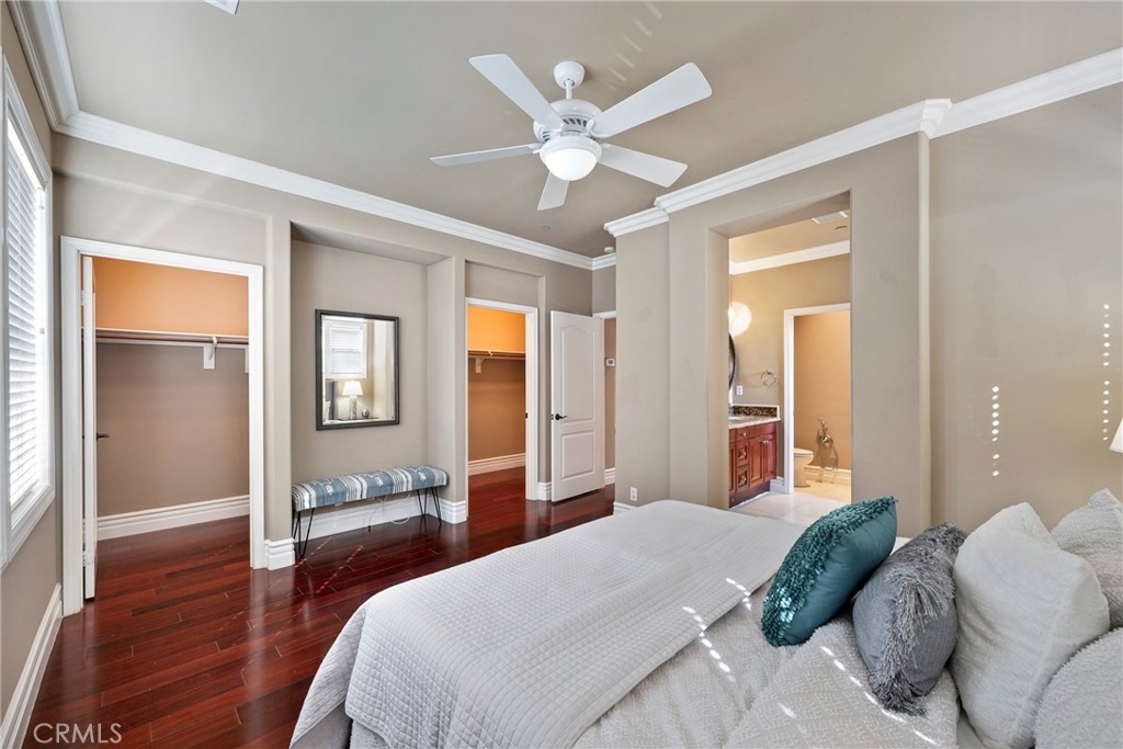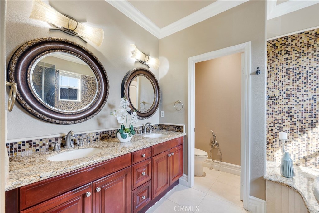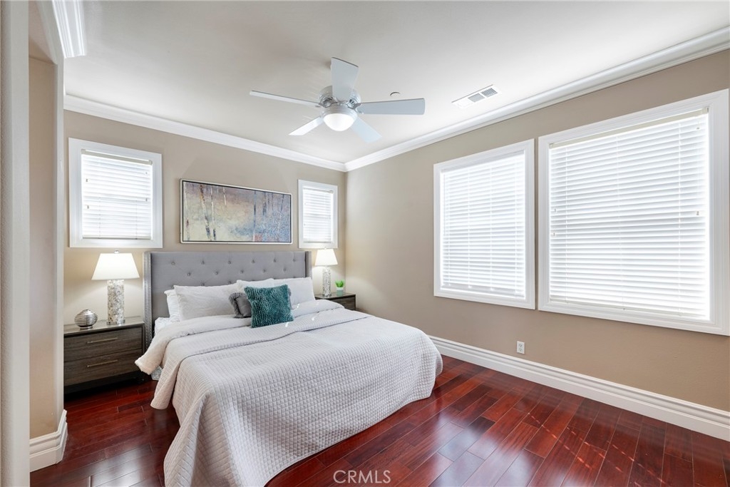 Just fell out of Escrow...Subject to cancellation. Priced below recent model match comparable sales in the community. Located in the beautiful, gated Tremont development within prestigious master planned community of Serrano Heights. This home boasts many high-end upgrades and finishes including: granite kitchen countertops, stainless appliances, tile and hardwood flooring throughout, crown molding, wash (bidet) plumbing in all bathrooms, ceiling fans in all bedrooms. Primary bedroom suite has dual sinks in the bathroom with jetted jacuzzi tub and sperate shower. Includes refrigerator, newly installed microwave above the stove, washer and dryer in the laundry room. Adjacent to Anaheim Hills elementary school and next-door community park/playground. This home is move-in ready.